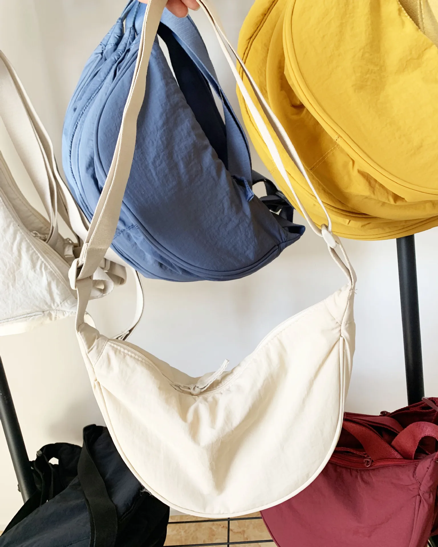 Casual Nylon Hobos Shoulder Bags for Women Lightweight Portable Ladies Crossbody Bag Simple Solid Color Female Handbags Purse