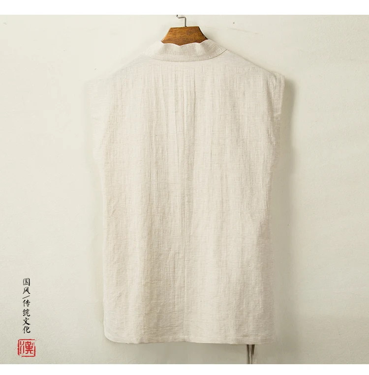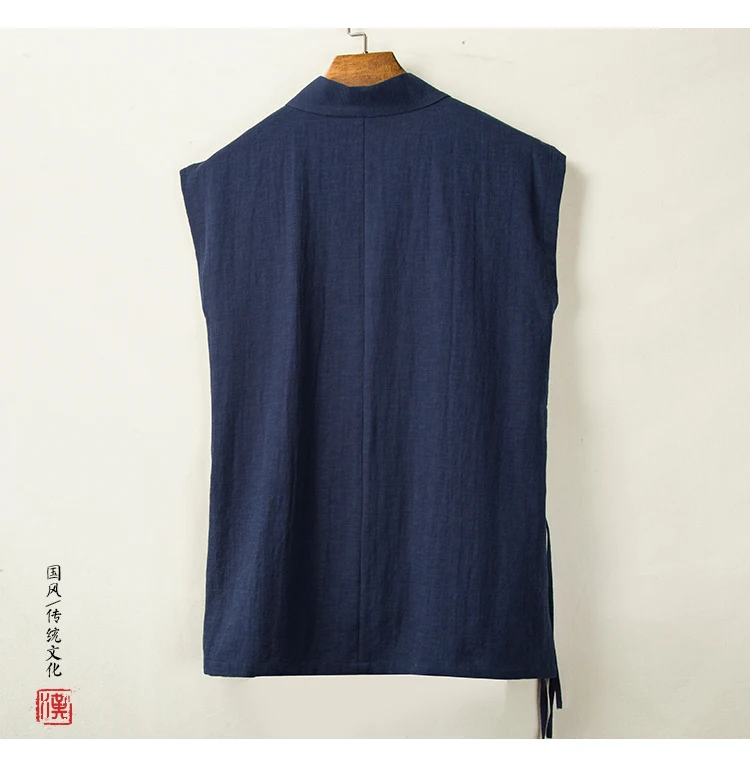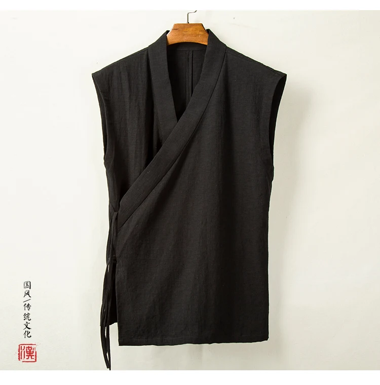 Chinese Traditional Clothing Hanfu Vest Men Linen Cotton Sleeveless Top Men's Tang Suit Kimono Cardigan Men's Slit Top