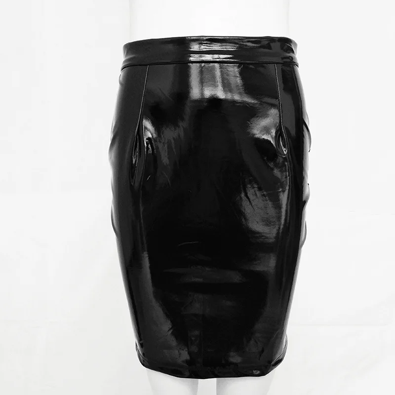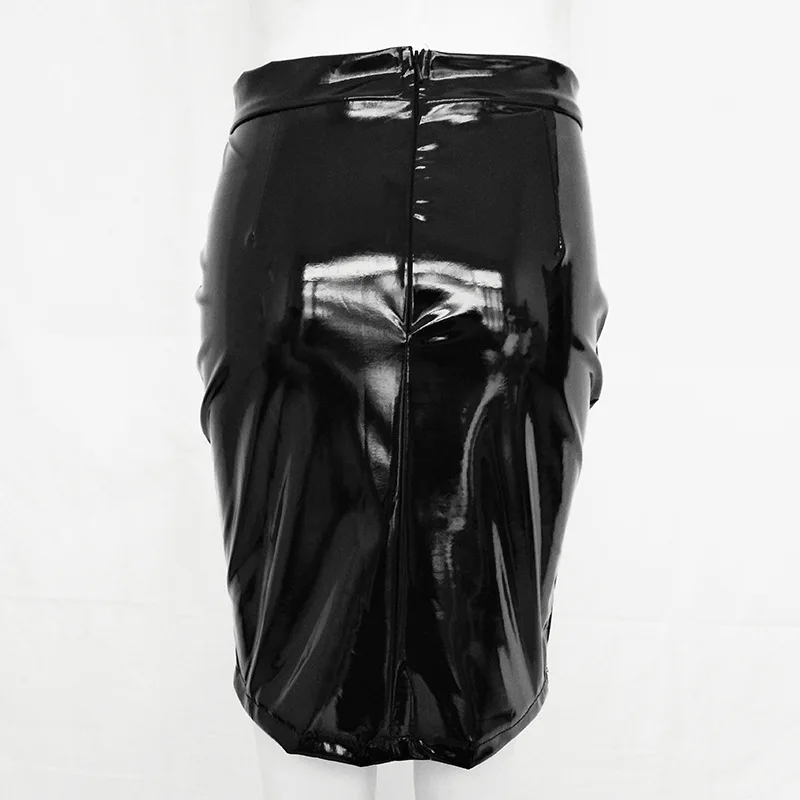 CHSDCSI Black Sexy women's Leather Skirts Streetwear Club Solid clothes Shiny High Waist pencil Skirt Lady Red Lady Skinny Skirt