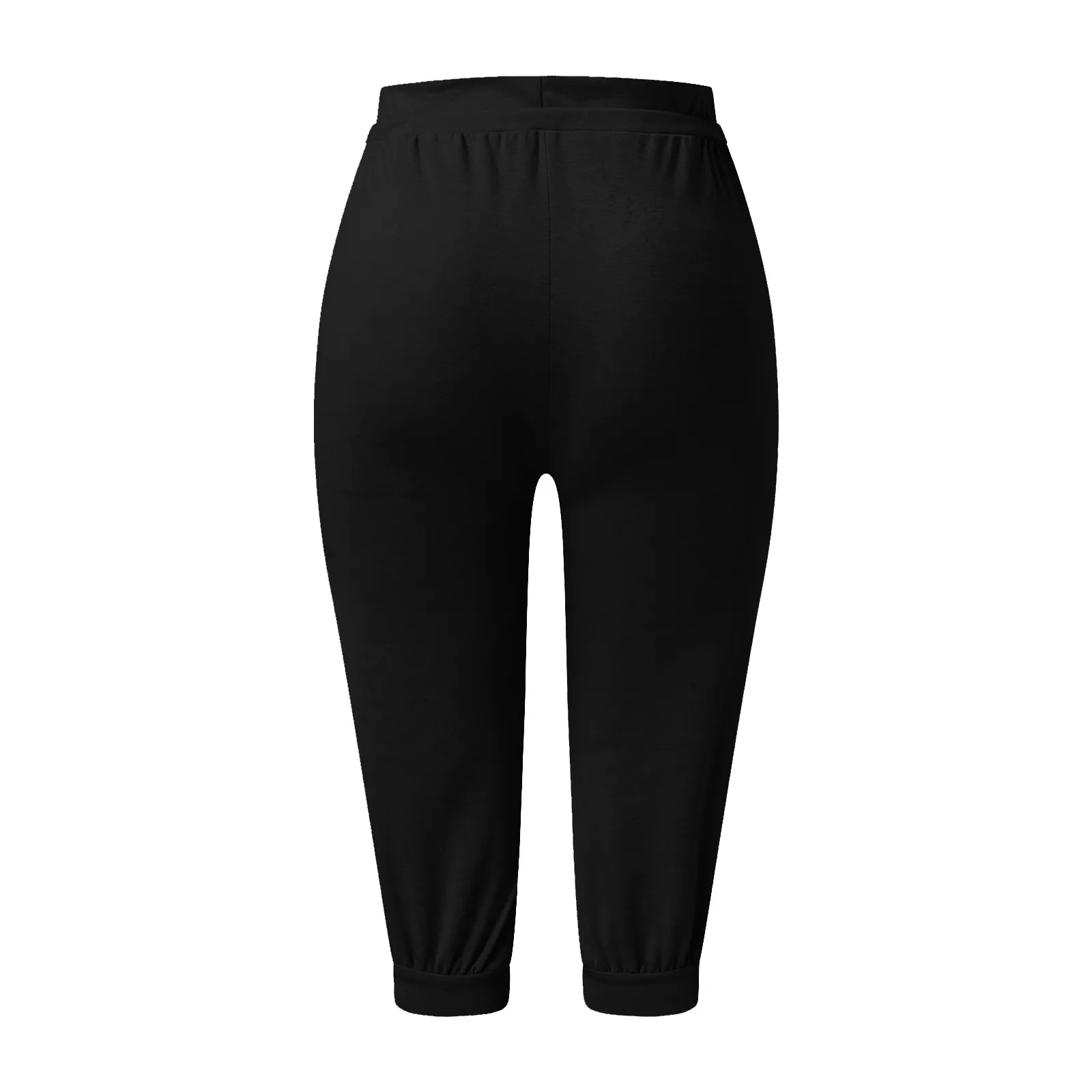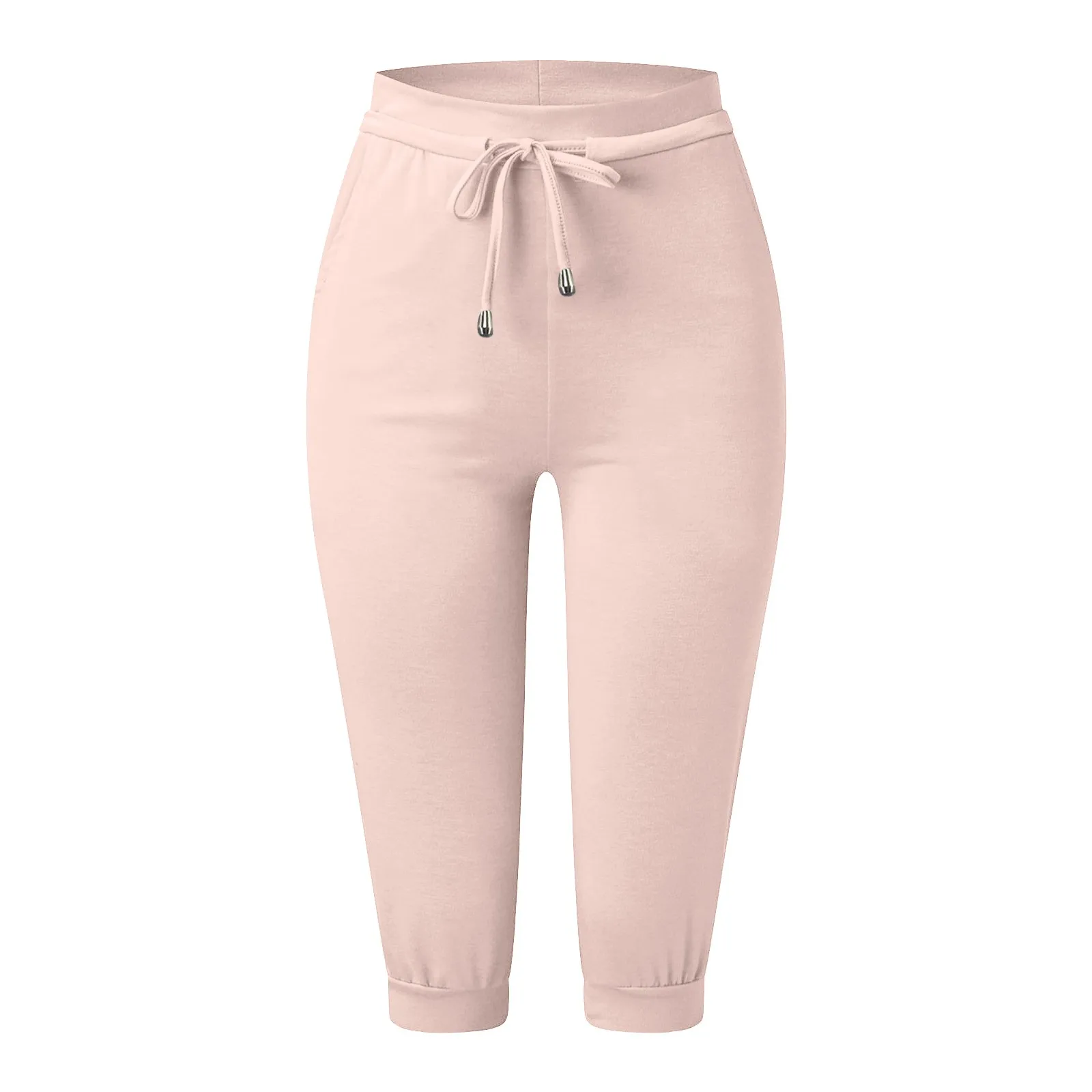 Women's Fashion Casual Solid Color Elastic Waist Drawstring Lace Cropped Pants