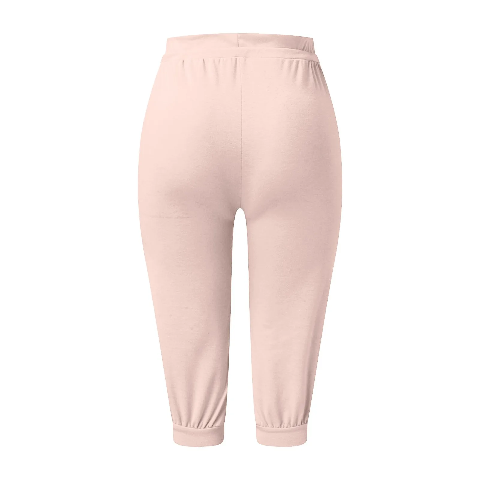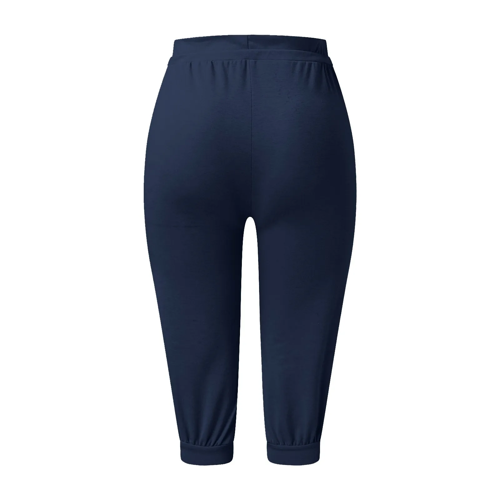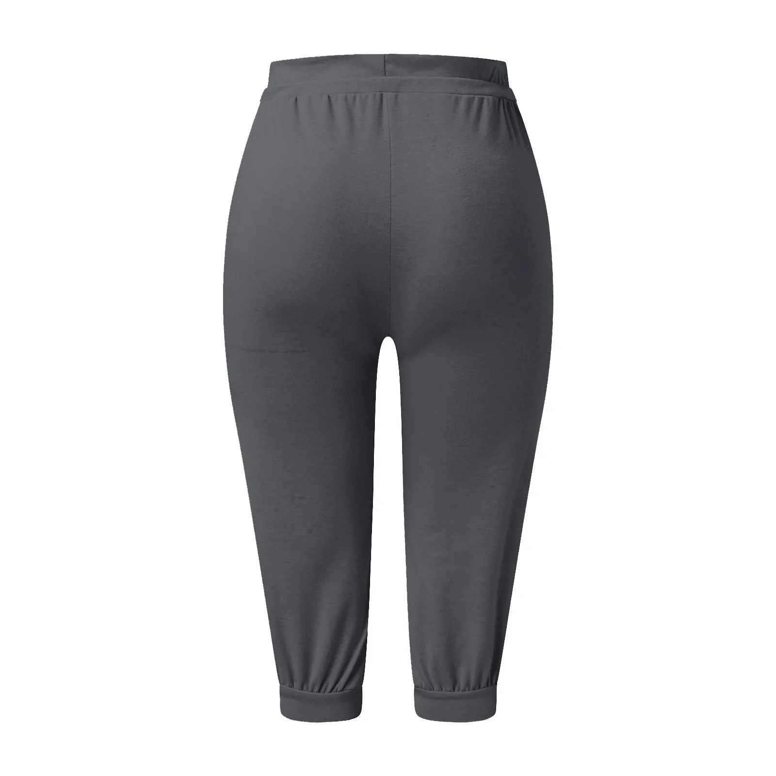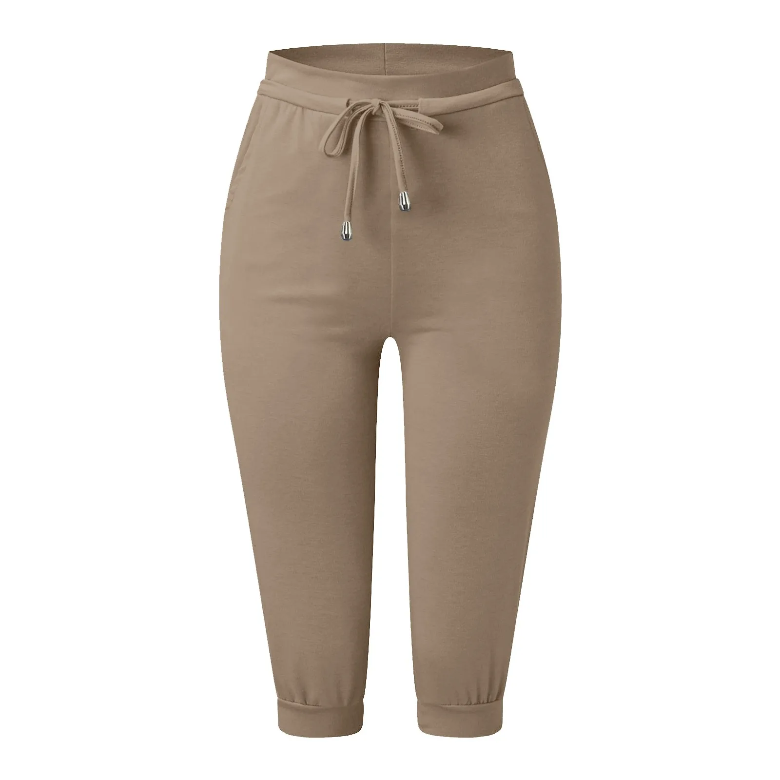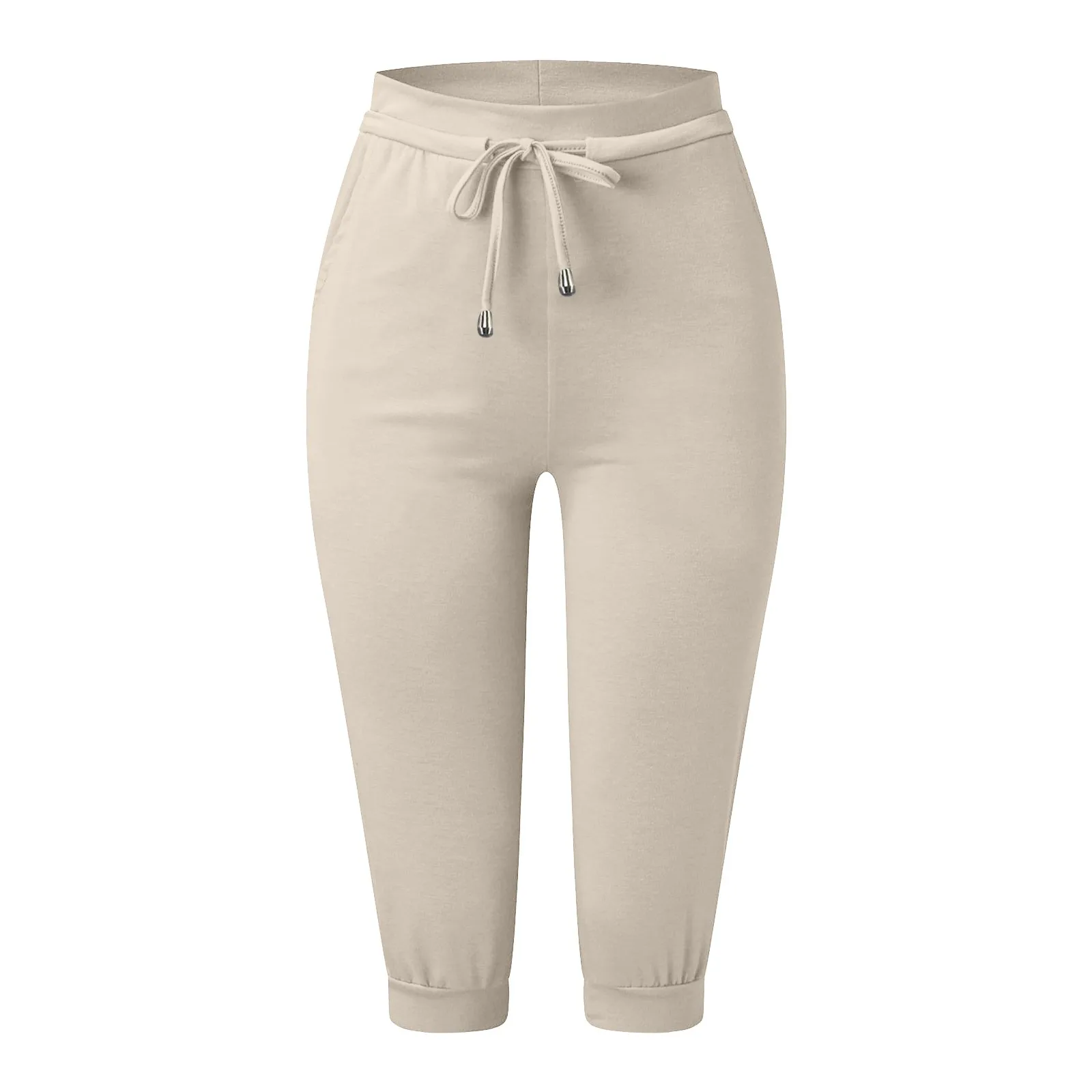 Classic Solid Color Jogging Pants Women Cotton Linen Capris Trousers Bandage Double Pocket Pants Summer Beach Vacation Wear