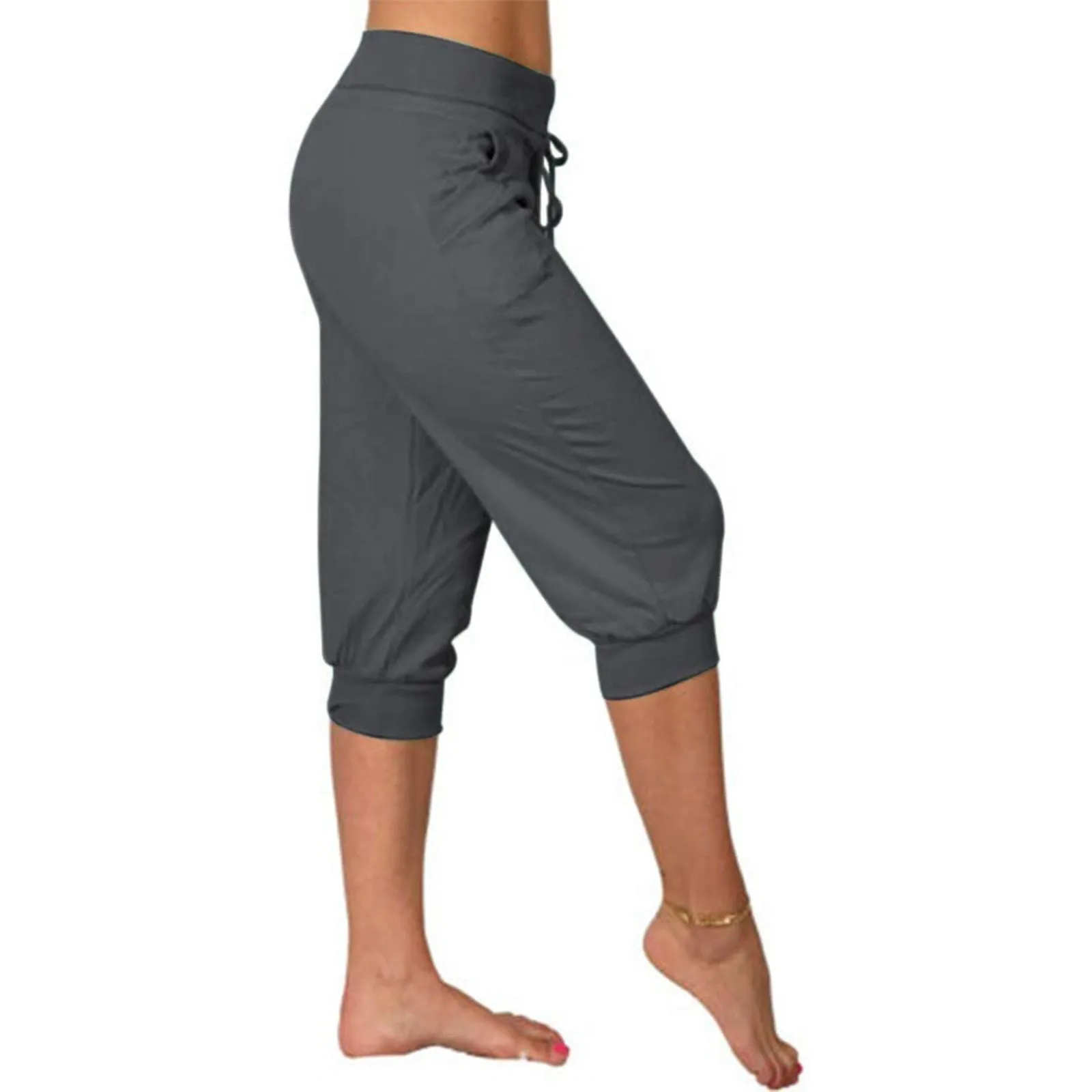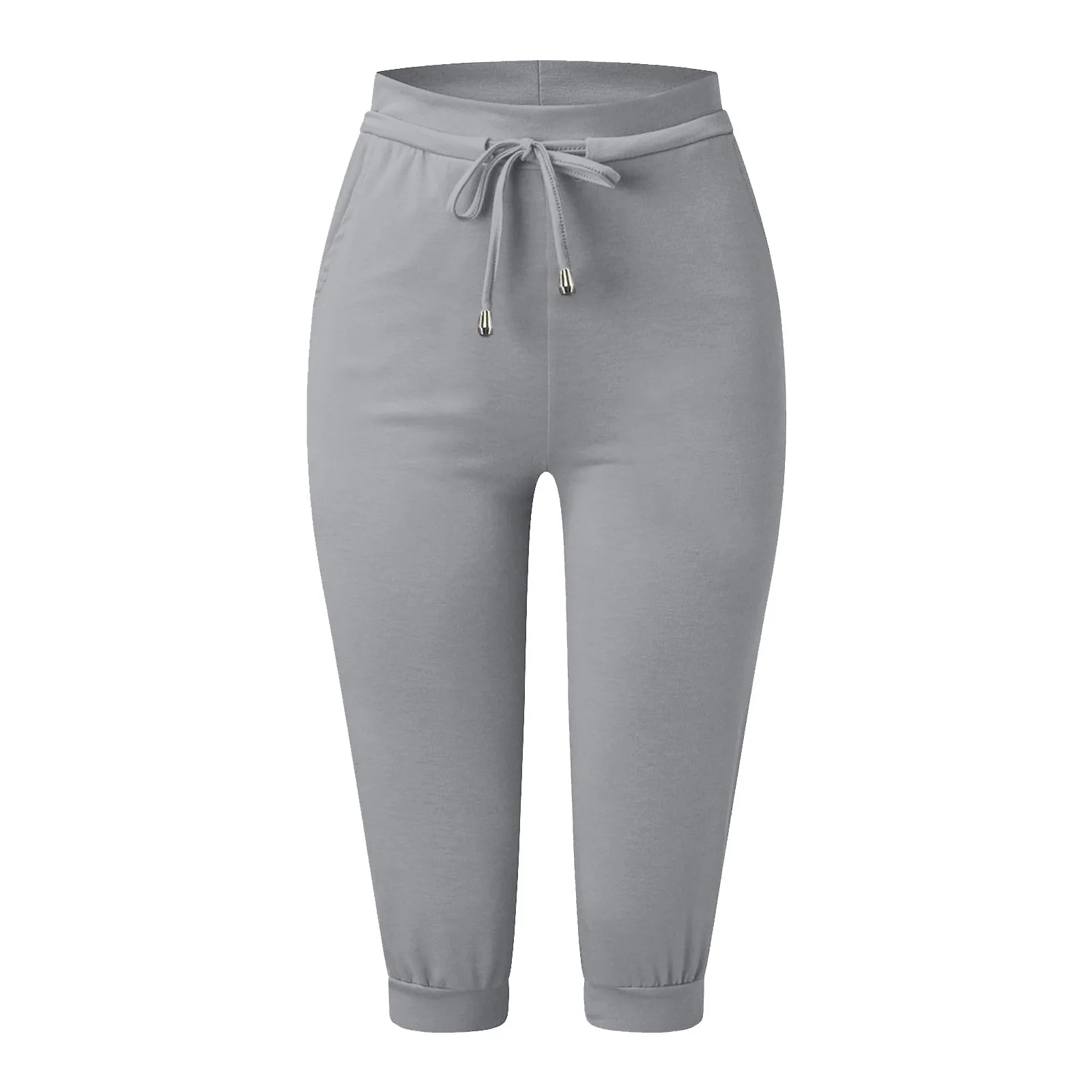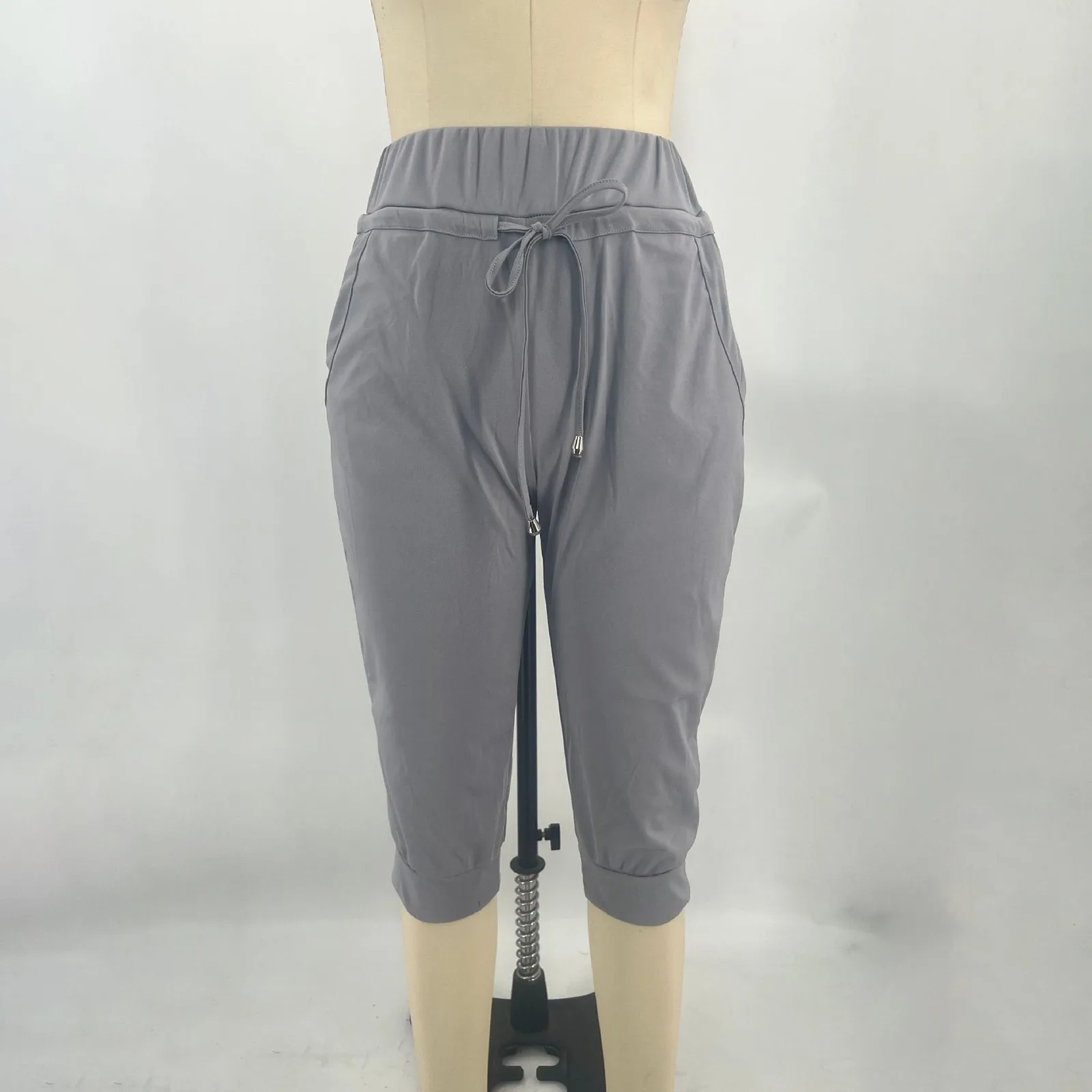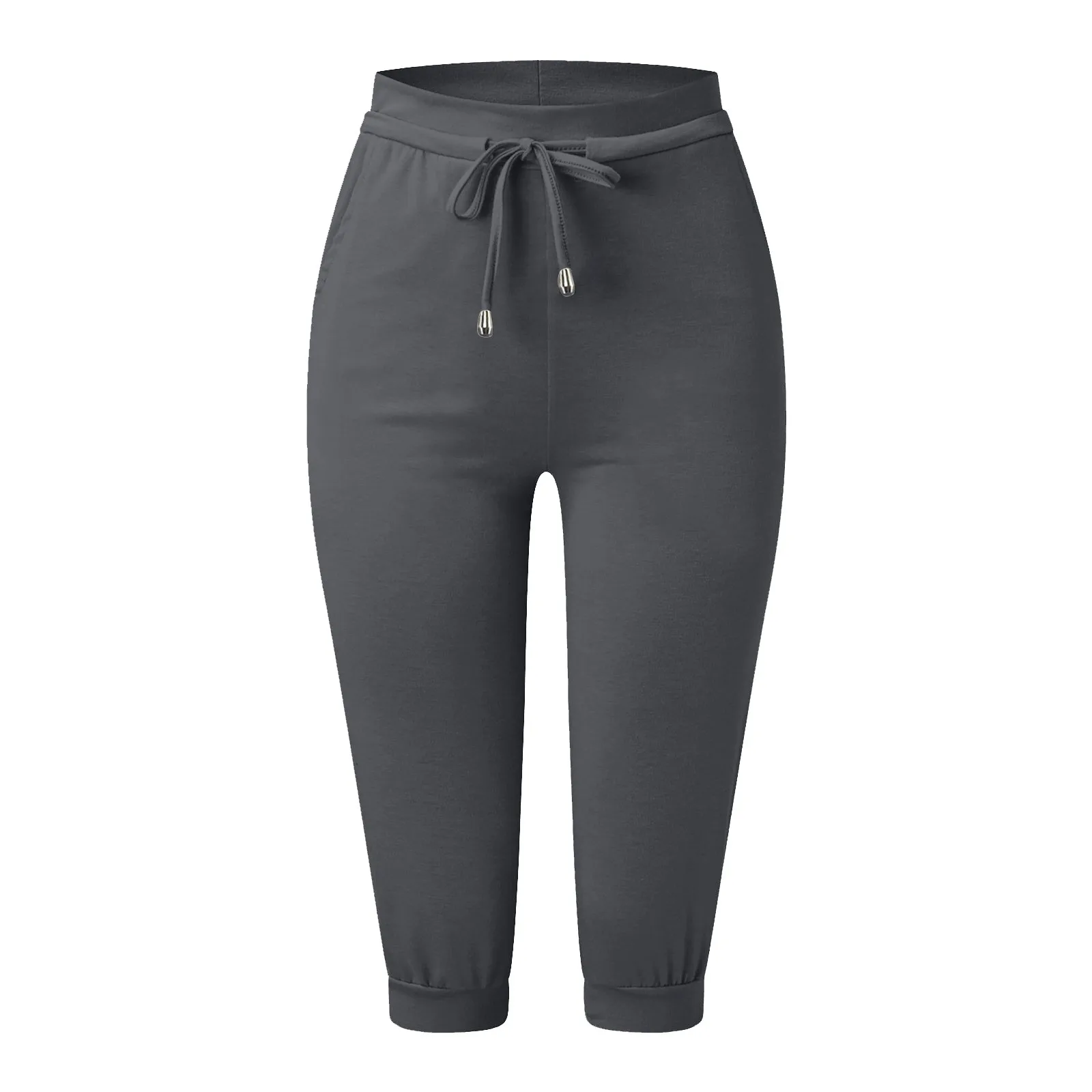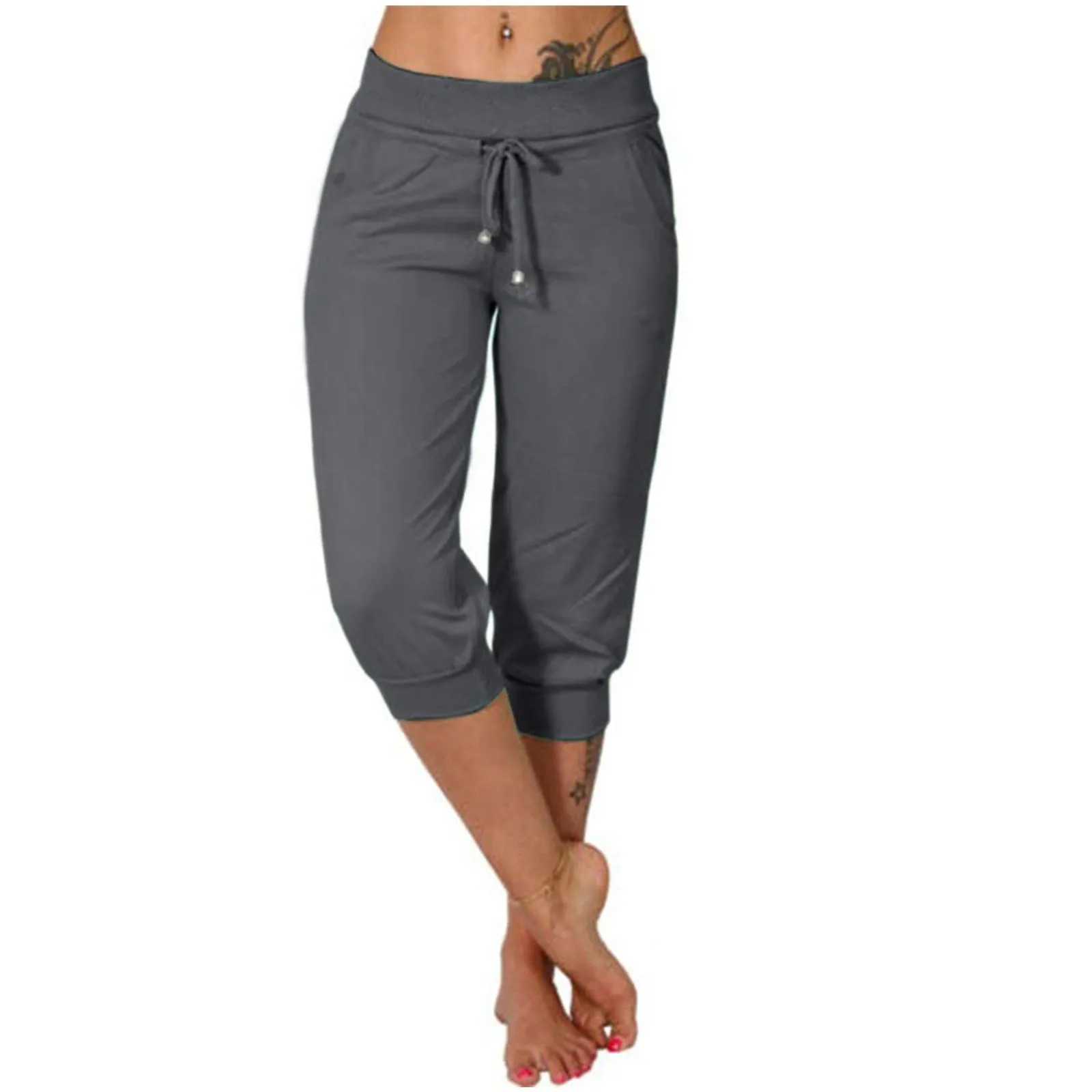 Classic Solid Color Jogging Pants Women Cotton Linen Capris Trousers Bandage Double Pocket Pants Summer Beach Vacation Wear