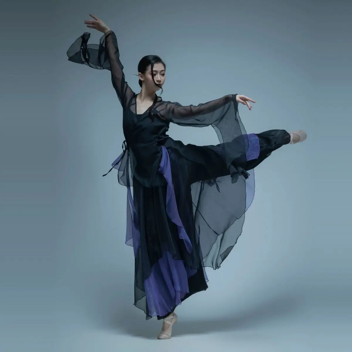 Classical Dance Costume For Women, Flowing Gauze Dress, Chinese Style Practice Outfit, Female Body Rhythm Gauze Dress, Martial