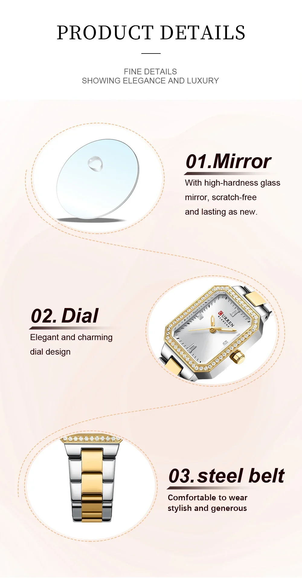 CURREN Women Watch Quartz Watch for Ladies Simple Elegant Dress Wristwatch Stainless Steel Bracelet
