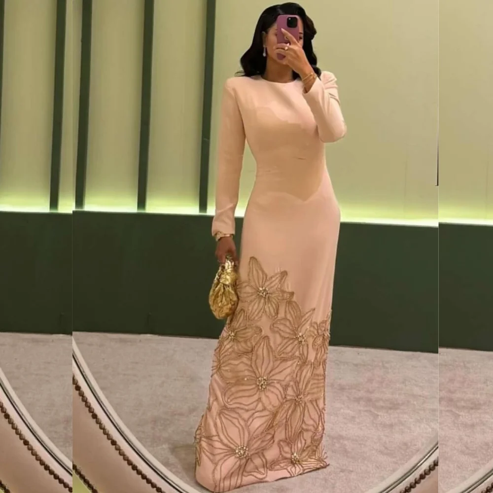 Customized Classic Jersey Pleat Flower A-line O-Neck Midi Dresses Evening Dresses Exquisite Modern Style Pastrol Unisex Chinese