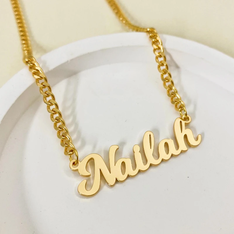 Customized Name Necklace Personalized Stainless Steel Cuban Chain Letter Nameplate Necklace Jewelry Set Gift
