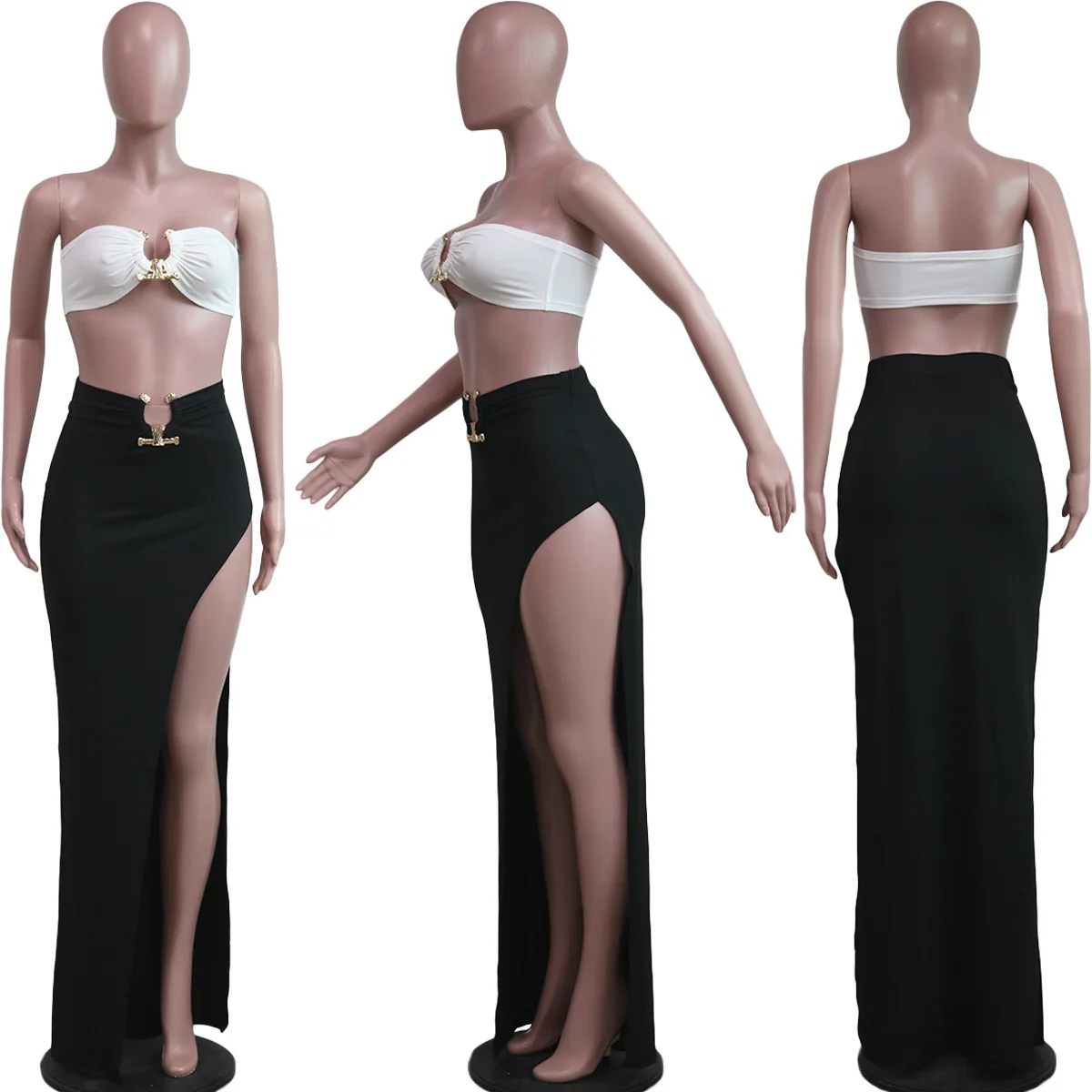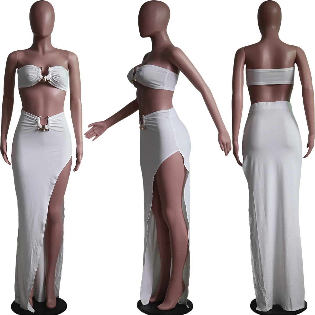 Customized Sexy Strapless Hollow Out Women Dress White Sleeveless High Slit Dress Female Autumn Skinny Elegant Party Clubwear 20