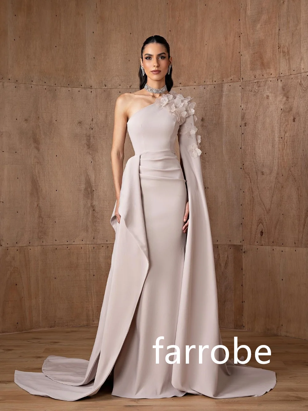 Customized Simple Jersey Pleat Flower A-line One-shoulder Long Dresses Bespoke Occasion Dresses Classic Exquisite Modern Style P