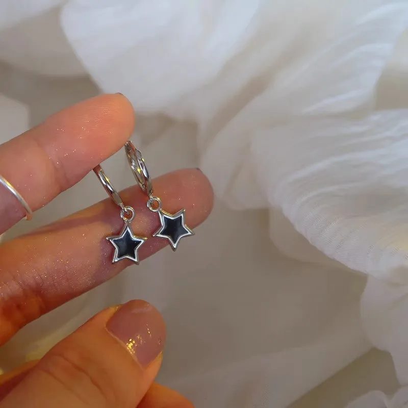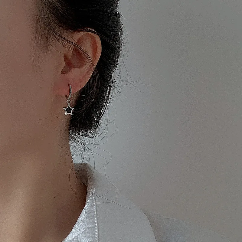 Cute Lovely Small Hoop Earrings For Women Tiny Huggie Mini Round Circle With Pentagram Star Pendant Female Dangle Ear Accessory