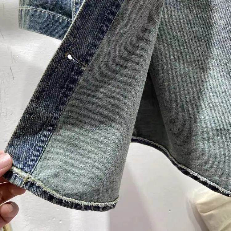 Denim Shirt Women's Summer 2024 New Turndown Collar Loose Casual Short Jacket Fashion Short Sleeved Single Breasted Thin Top