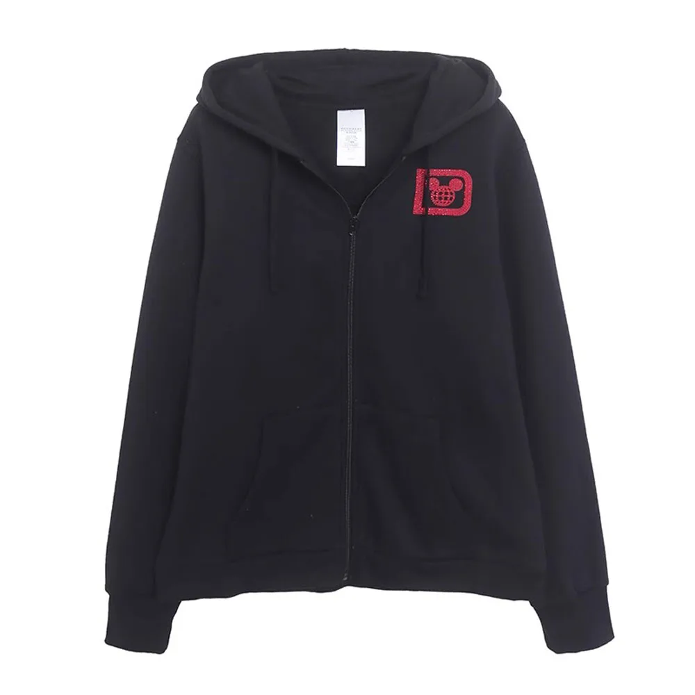 Disneyland Sweatshirt Castle Shining Mickey Disneyworld Letter Glitter Minnie Unisex Couple Women Zip Pocket Hooded Jumper Top
