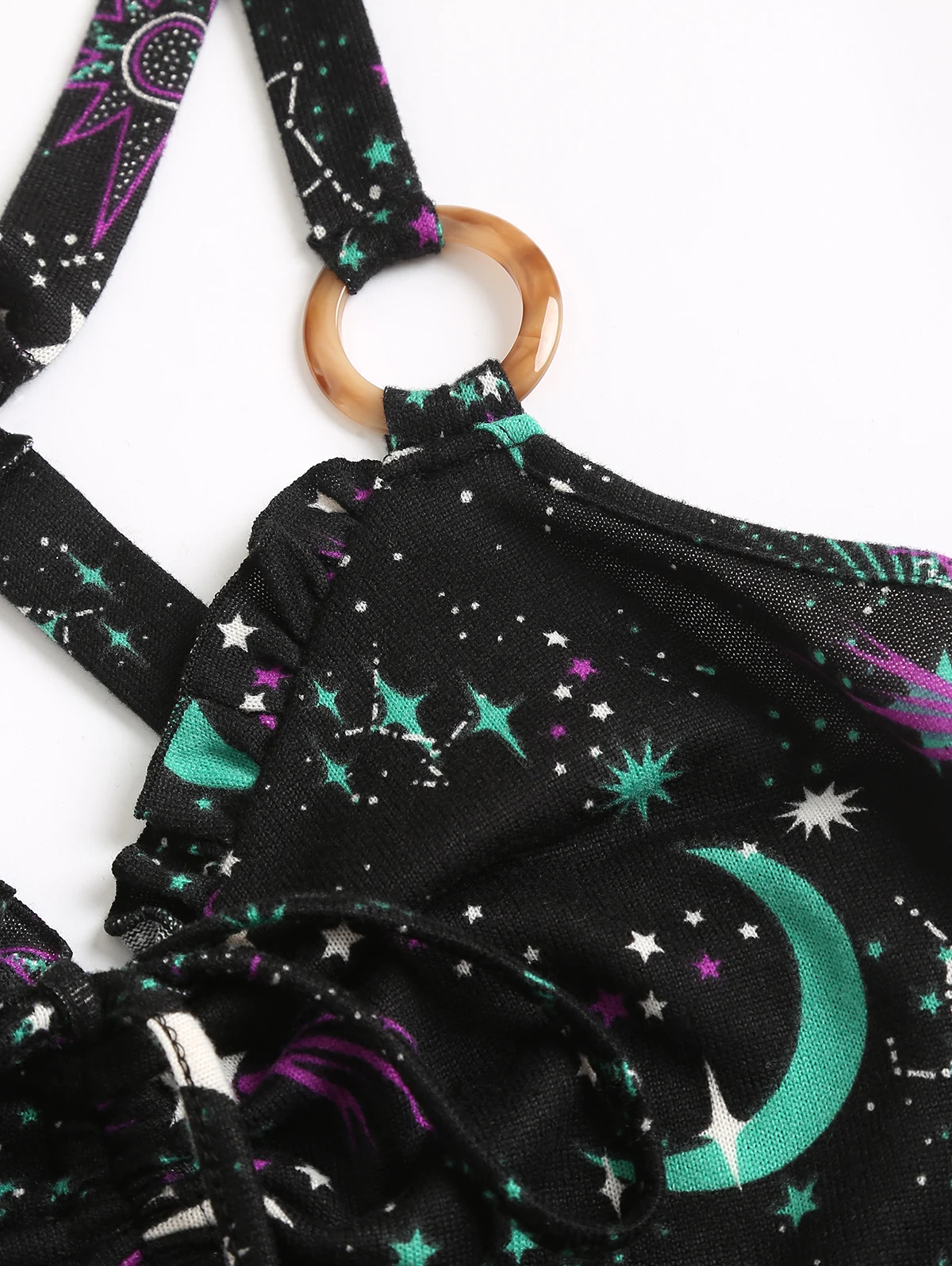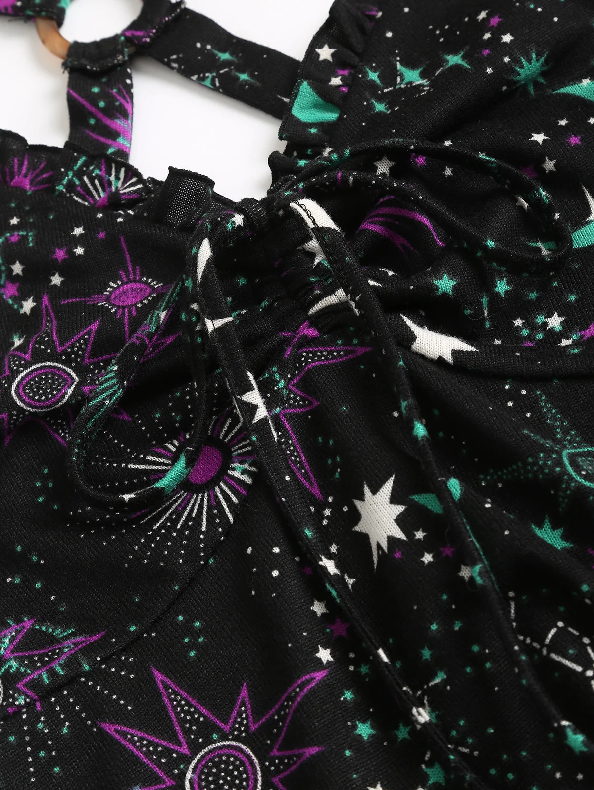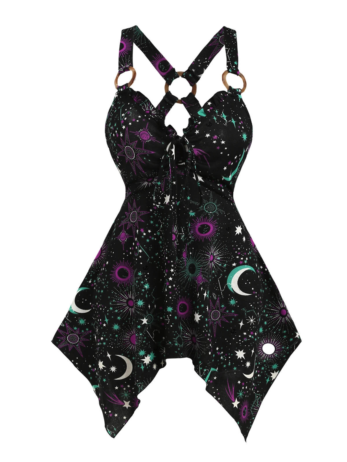 Dressfo 2025 Women's Gothic Tank Tops Galaxy Sun Star Moon O Ring Lace Up Handkerchief Hem Summer Tank Top Y2k Clothes
