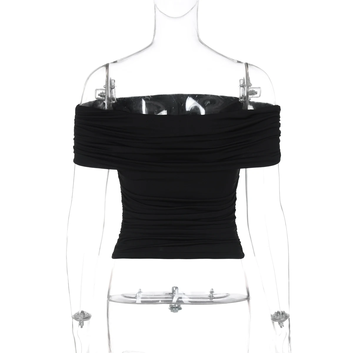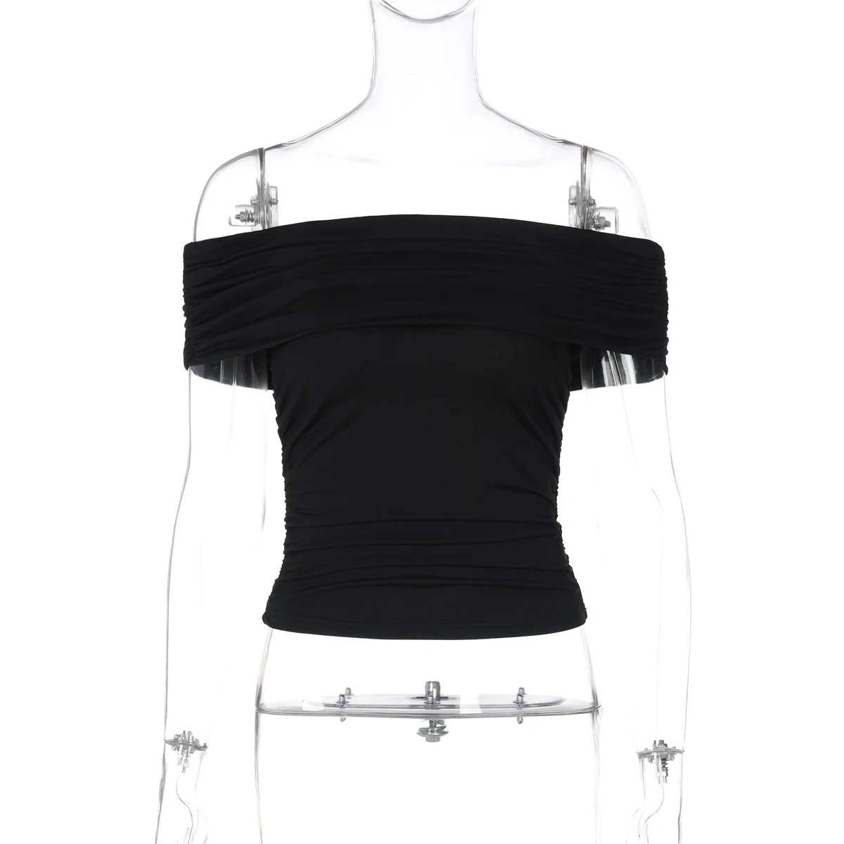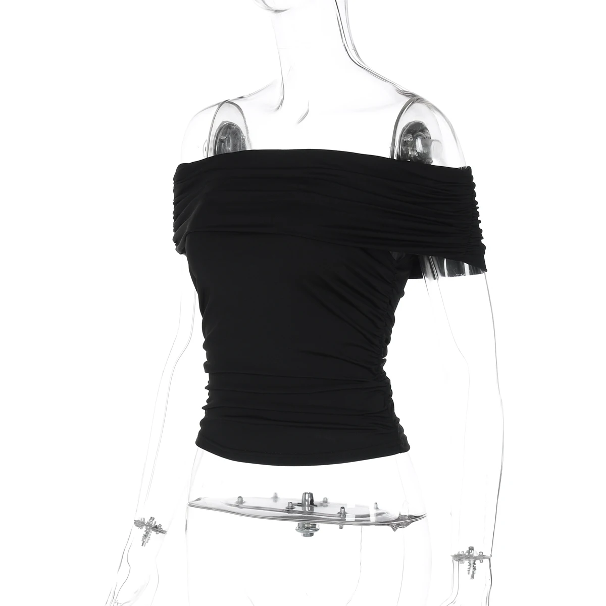 Dulzura Sleeveless Off Shoulder Ruched Bodycon Crop Top Solid Sexy Elegant T-Shirt Party Club Streetwear Spring Summer Top