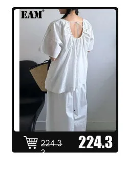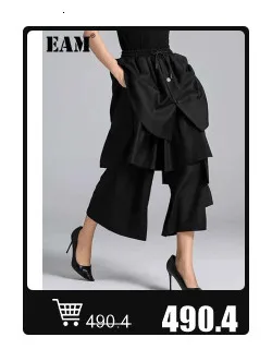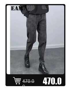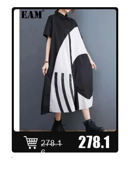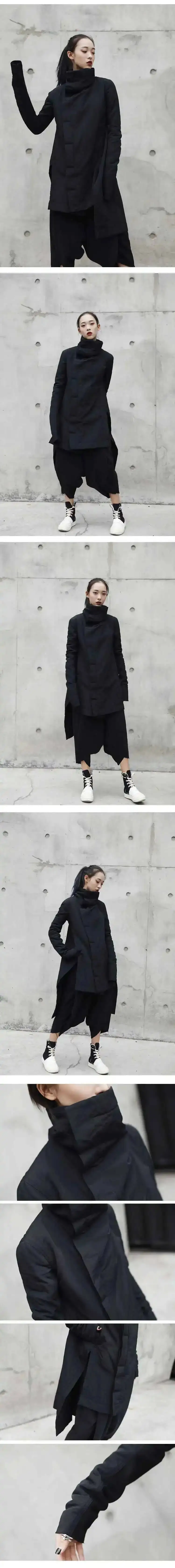 EAM 2024 New Fashion Winter Stand Collar Irregular Long Type Black Cotton-padded Clothes Loose Coat Black Jacket Woman YA771