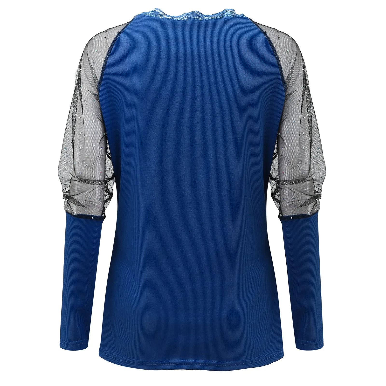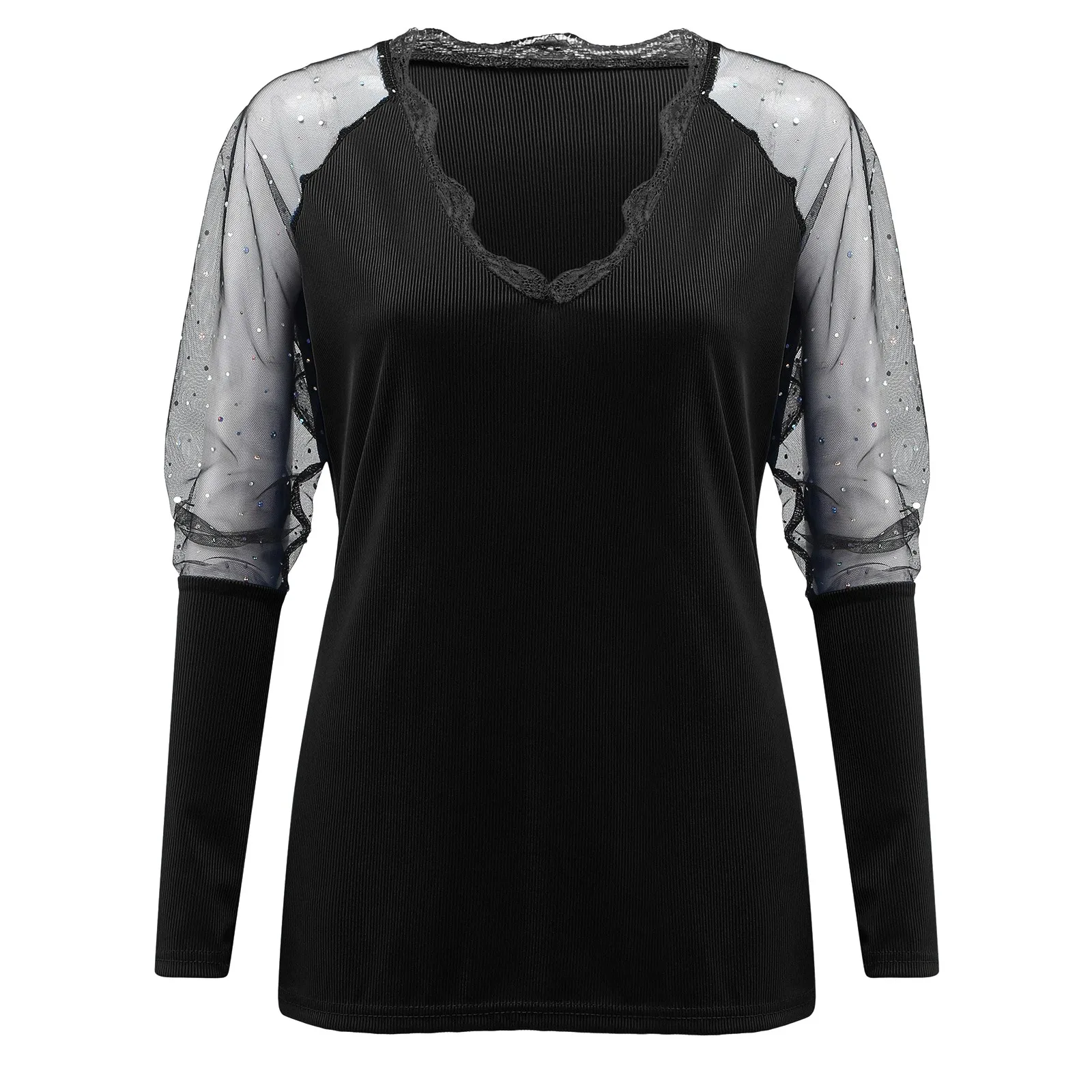 Elegant Mesh Blouse Women Slim Elastic V-neck Printed Lace Sexy Long Sleeve Top Fashion Streetwear Tops Blusas Mujer De Moda
