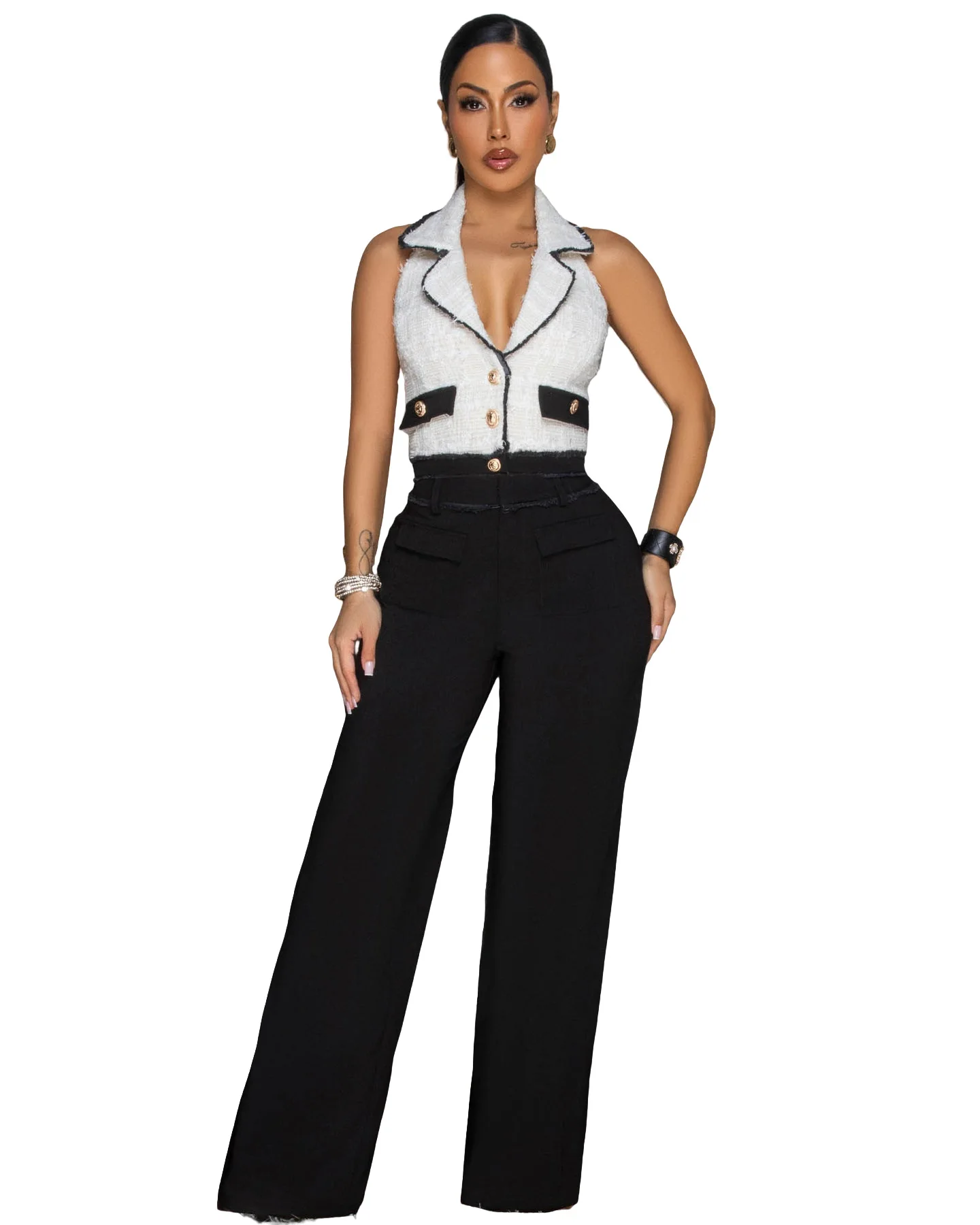 Elegent Office Lady Jumpsuits for Women Full Length Summer V Neck Sleeveless Blazer Jumpsuit High Waist Sexy Backless Jumpsuit