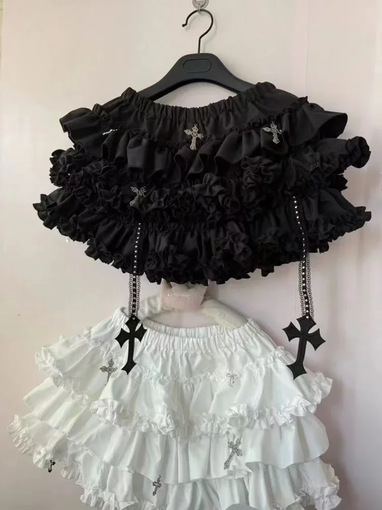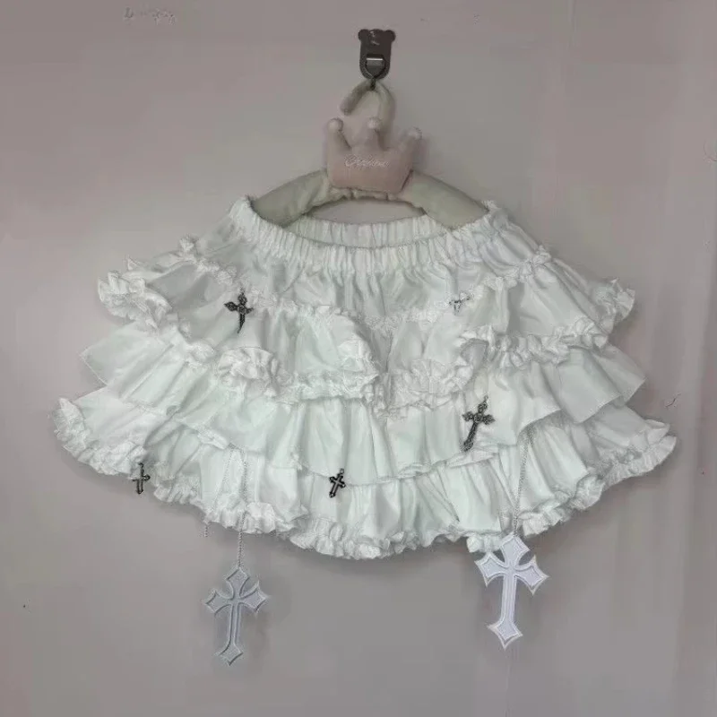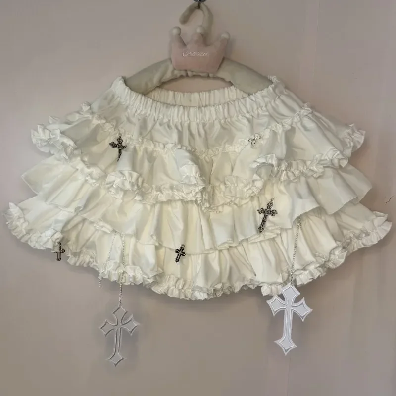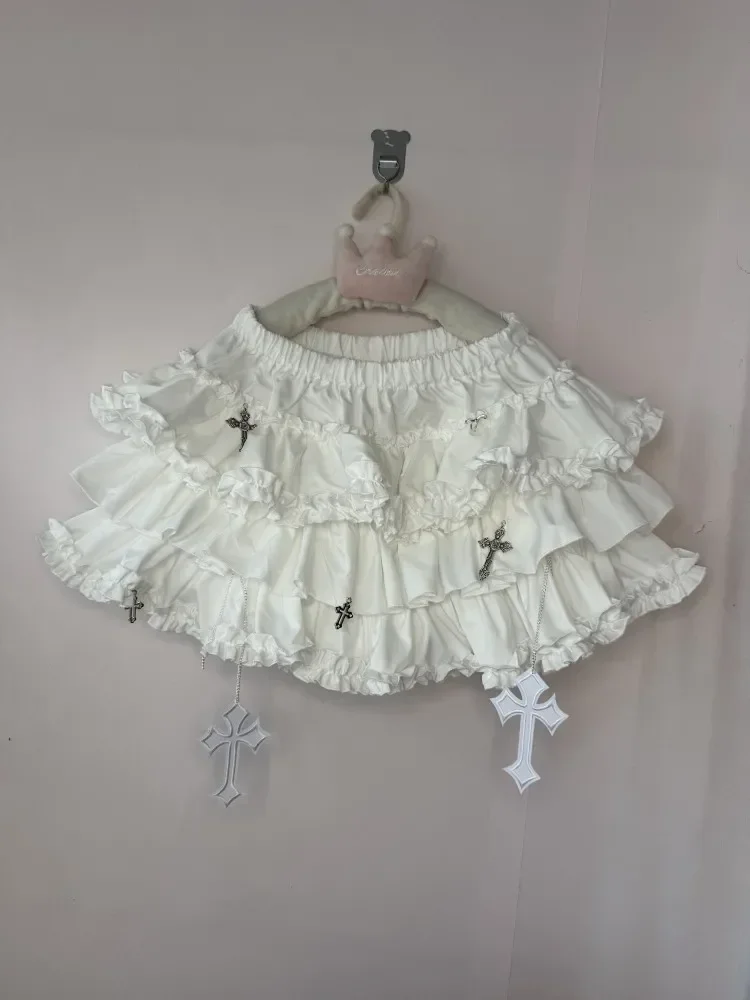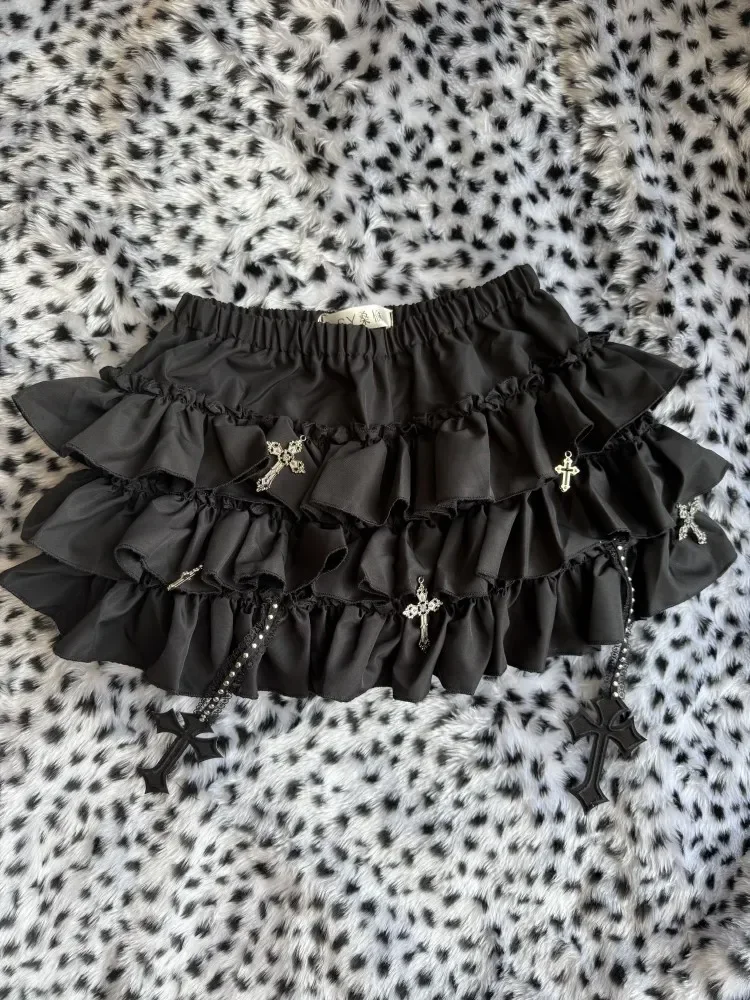 Emo Women Y2K Japanese Goth Elastic Waist Cross Mini Short Skirt High Waist Aesthetic Acubi Ruffle Skirts A-line 2000s Clothes