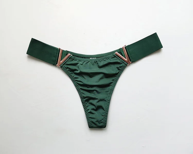 Europe and the United States sexy V-shaped metal thong sports hip lift low waist high fork T pants women thong lingerie cute