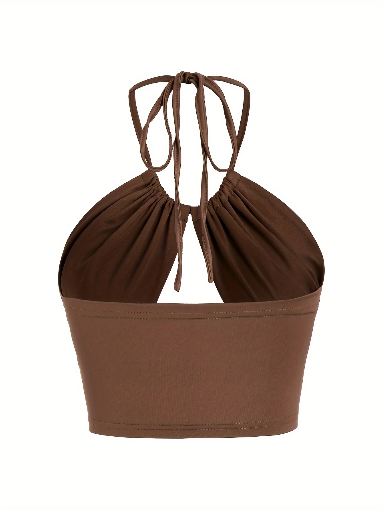 Versatile: Perfect for casual outings, beach trips, or even a night out with friends, this cropped halter top is a must-have in your wardrobe.