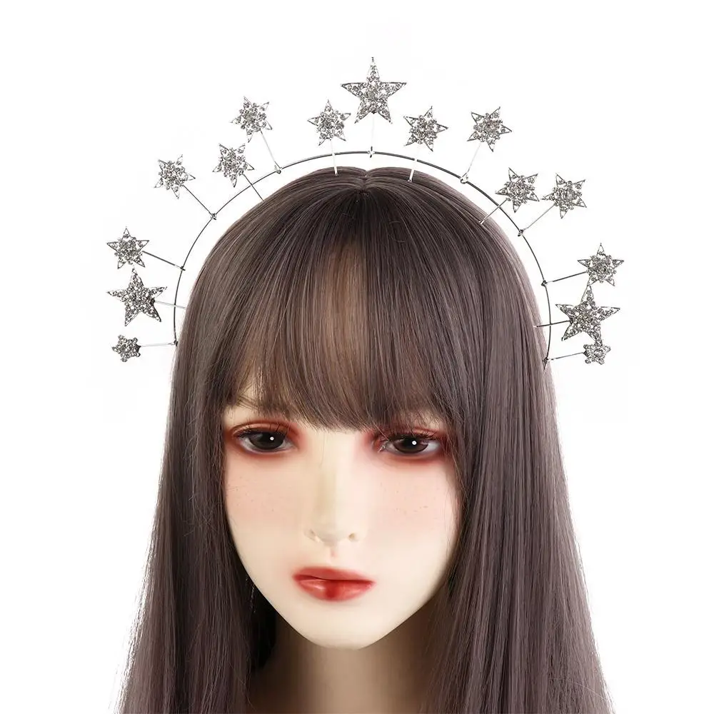 Exaggerated Metal Star Hair Hoop Silver Princess Halo Crown Bridal Hair Tiara Rhinestone Baroque Hairbands Children