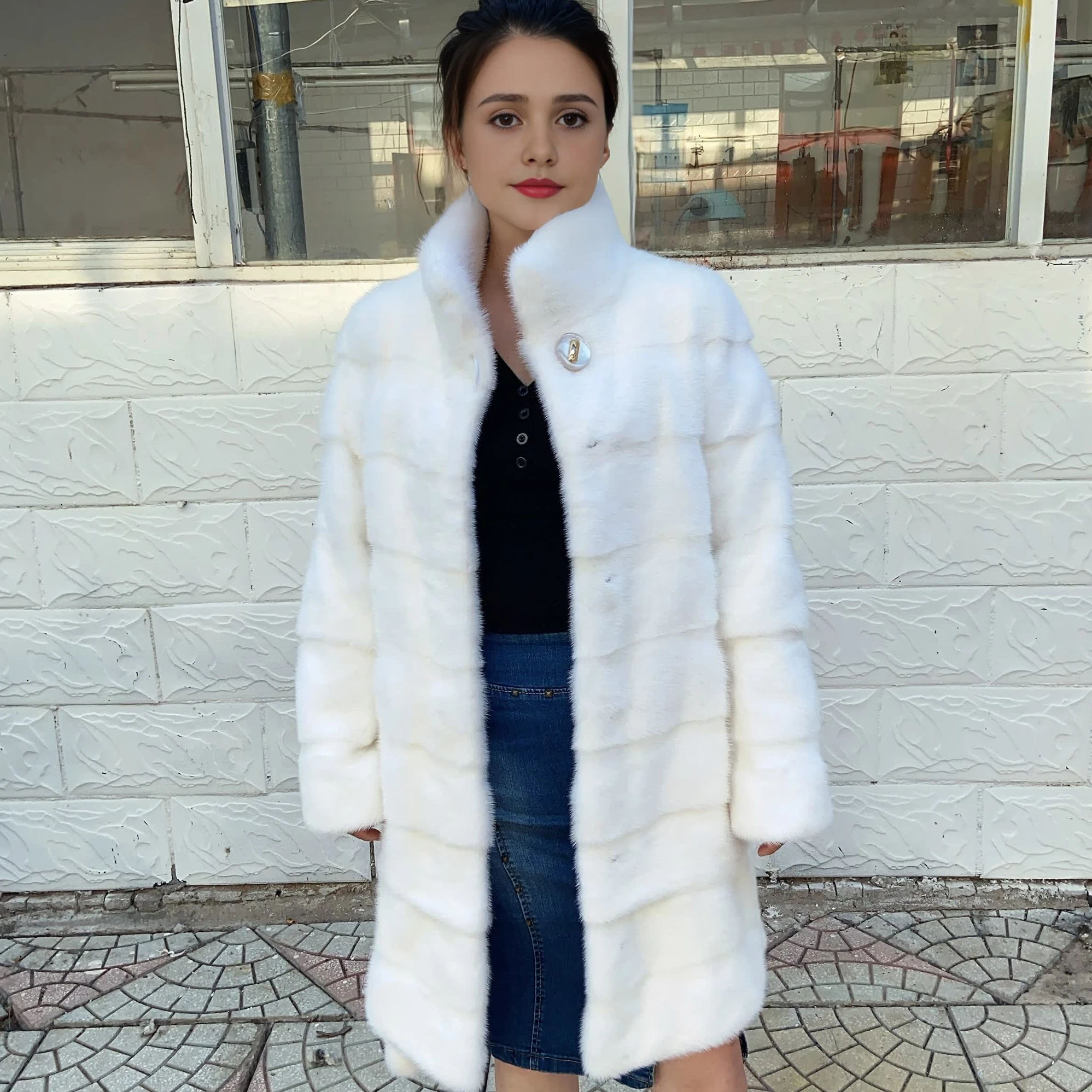 Fancy Rani Real Mink Fur Coat Natural White Women Winter Long Leather Jacket Luxury Female Clothes Mink Fur Coat Women Promotion