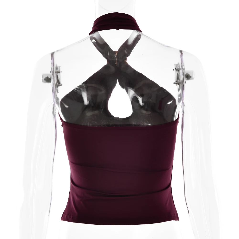 Fantoye Sexy Backless Metal Ring Halter Women Top Black Hollow Out Off Shoulder Crop Vest Female Summer Slim Elegant Streetwear