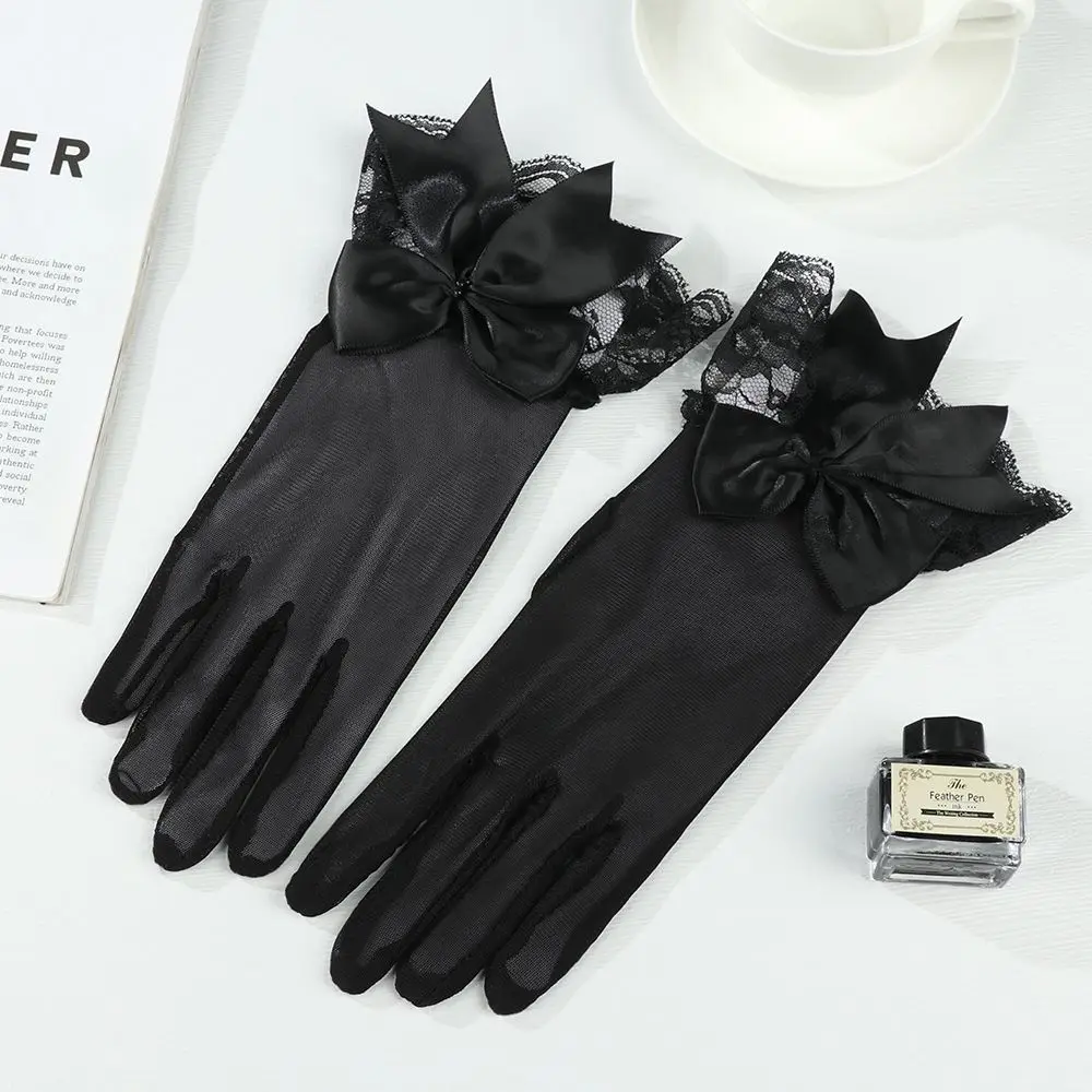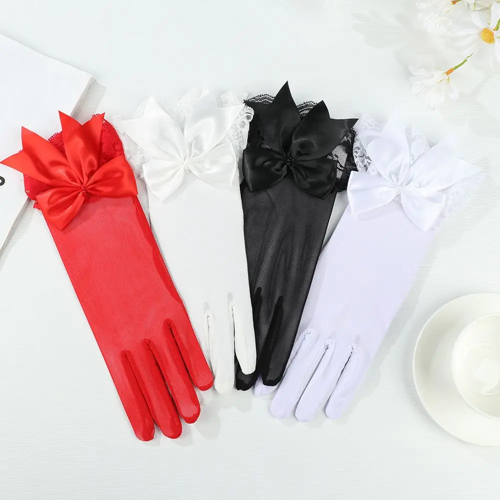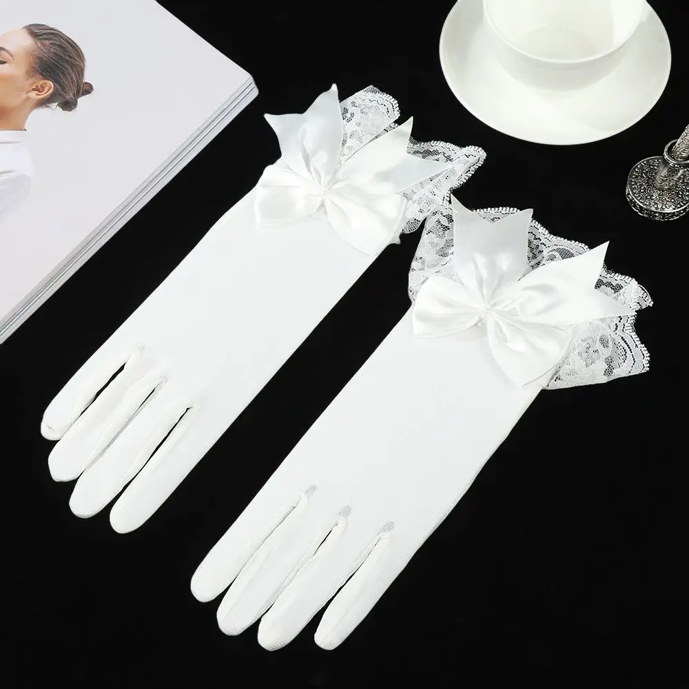 Fashion Bride Bow Lace Chiffon Gloves Women White Gloves Sunscreen Driving Gloves Marriage Party Accessories