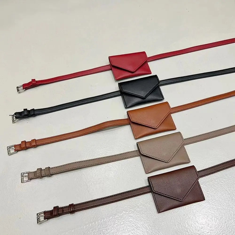 Fashion Korean Style Women Waist Bag Solid Color PU Belt Envelope Waist Bag Clutch Bag Card Pocket Small Card Bag Outdoor