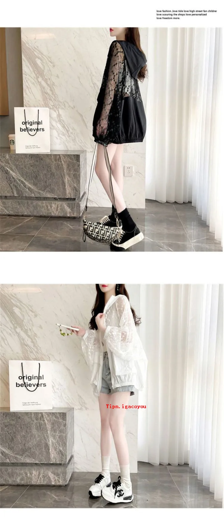 Fashion Lace Hollow Sun-Protective Clothes Women Hooded Coat New Summer Long Sleeve Cardigan Jacket Female Loose Outerwear G2498