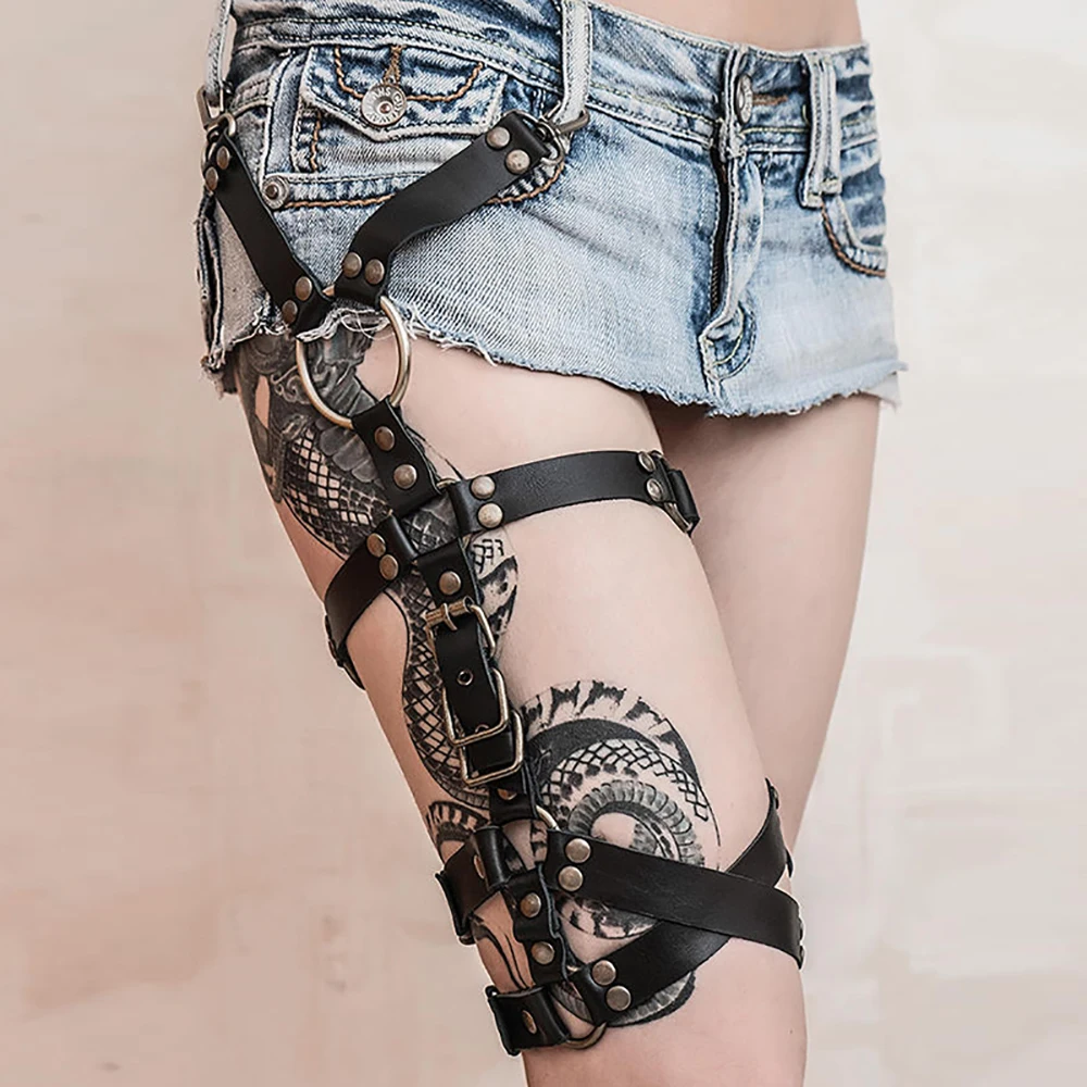 Fashion Leather Leg Harness Steampunk Stud Decor Harness Side Thigh Garter Belt-Travel Beach belt For Women Clothing Accessories