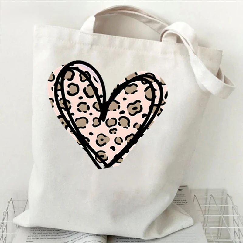 Fashion Love Heart Print Ladies Canvas Tote Casual Shoulder Bag Eco Large Capacity Portable Travel Shopping Bag Purses Handbags