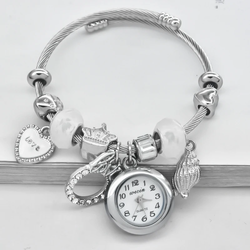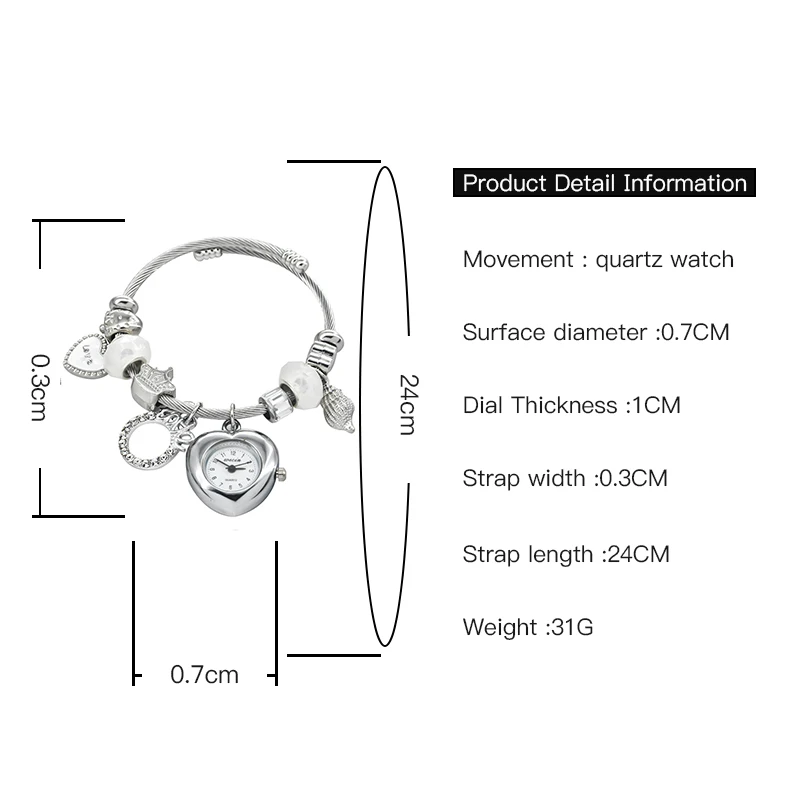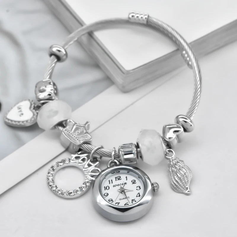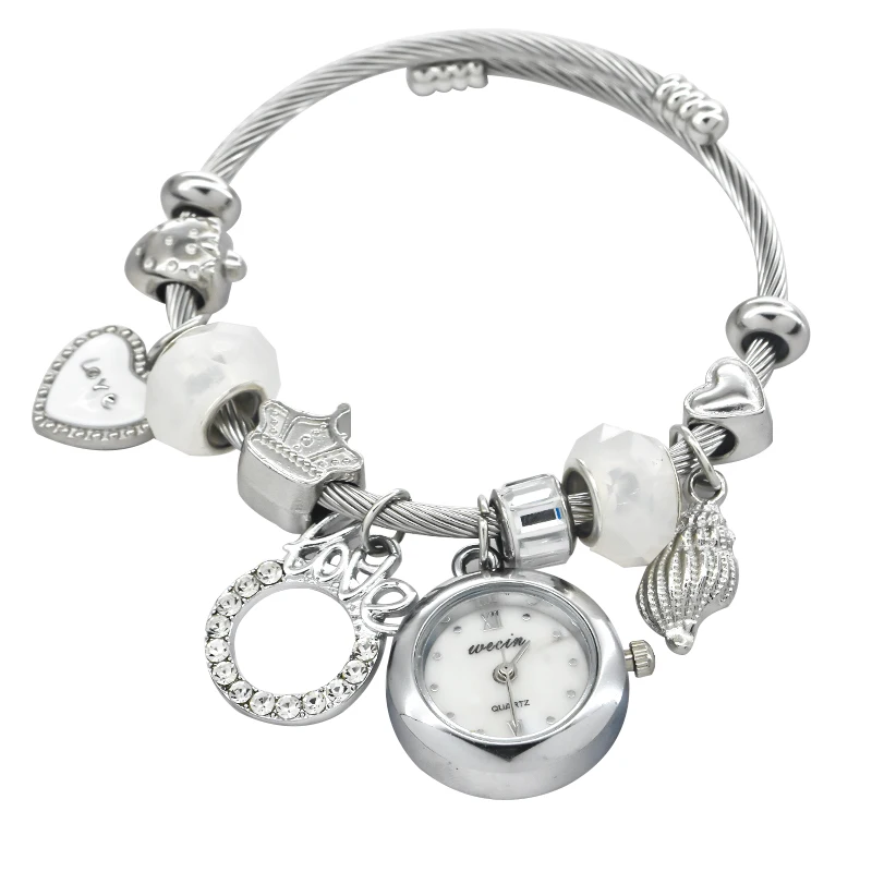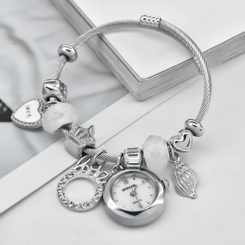 Fashion Women's Bracelet Watch Love with stylish decor refined round quartz watch silvery casual elegance