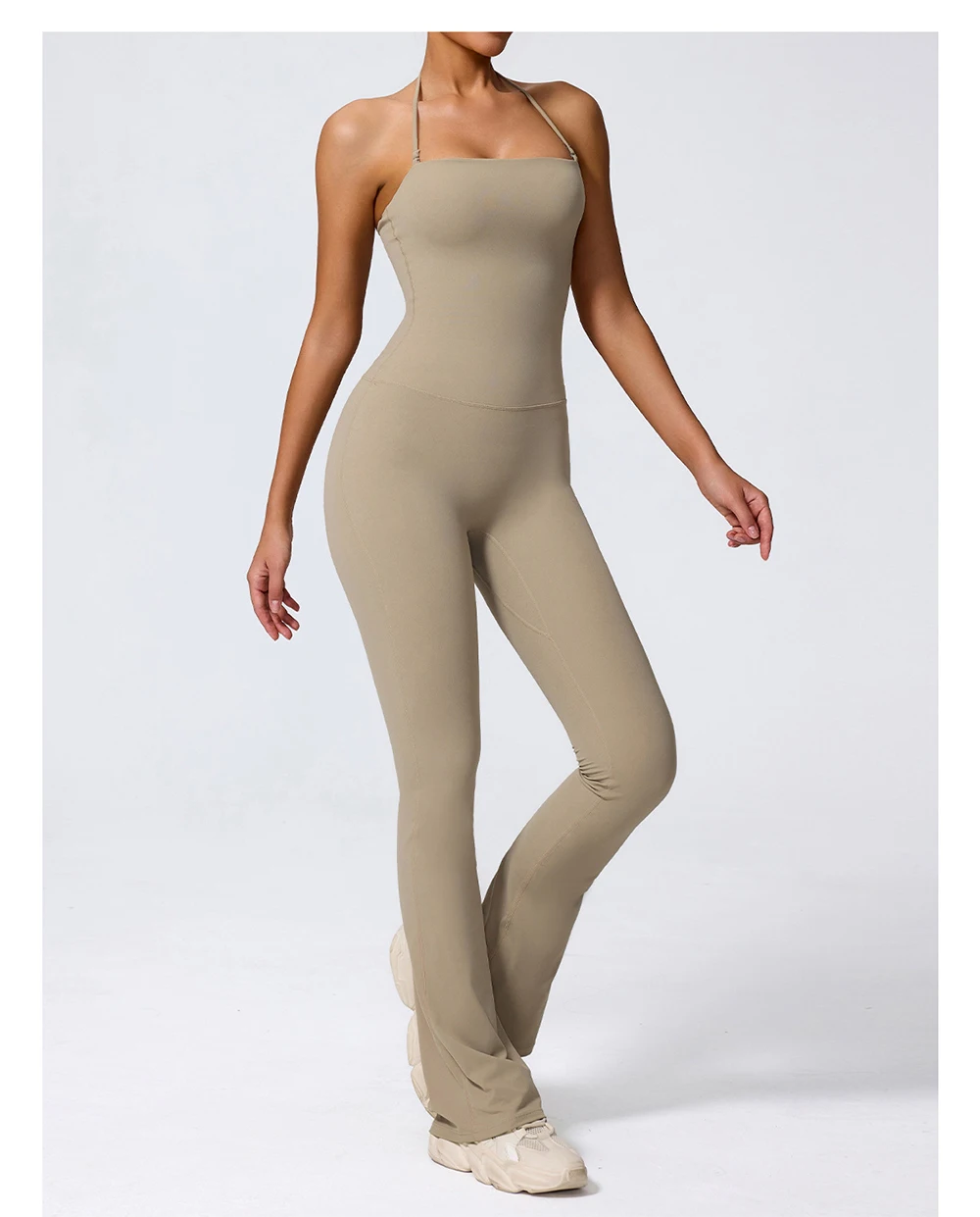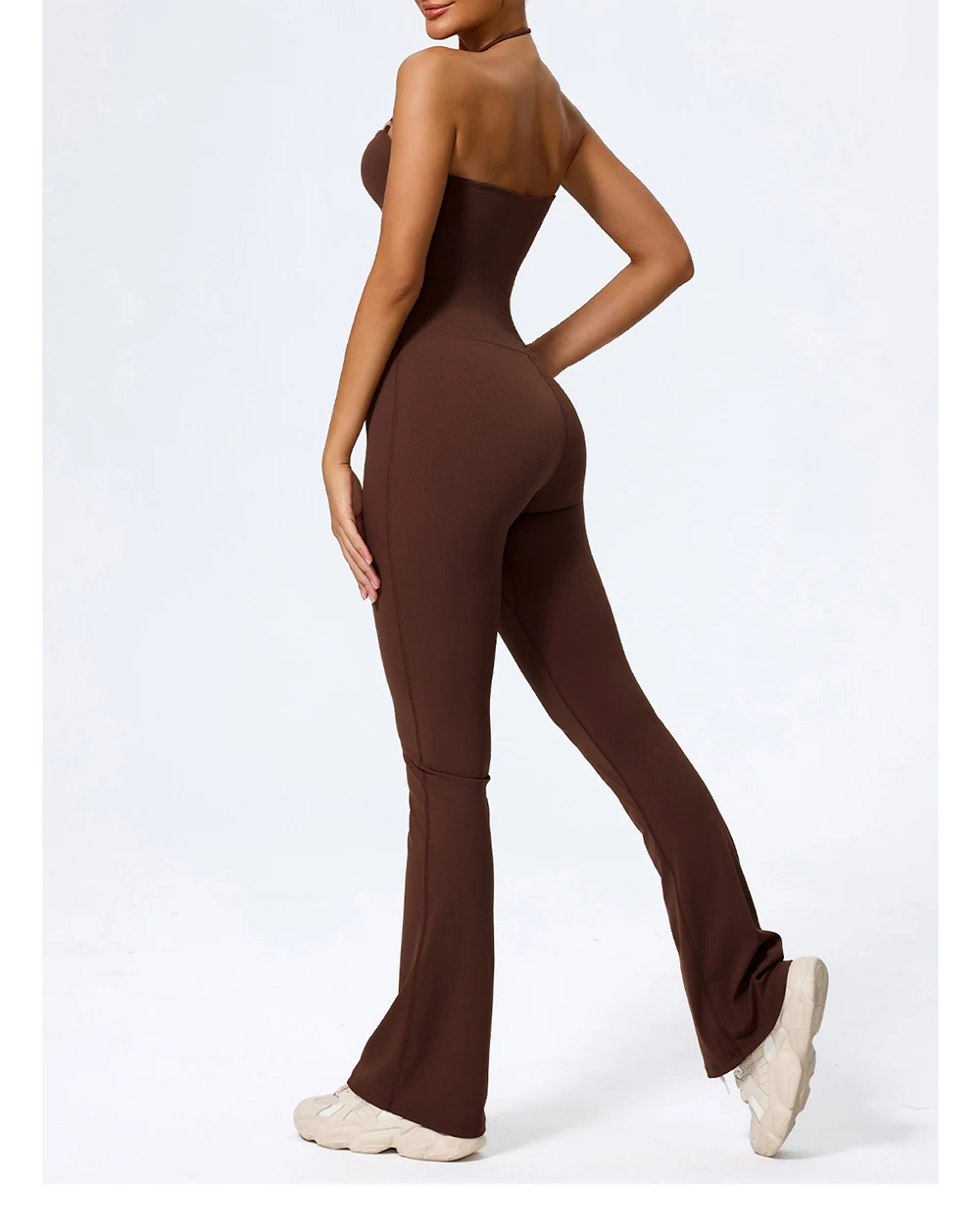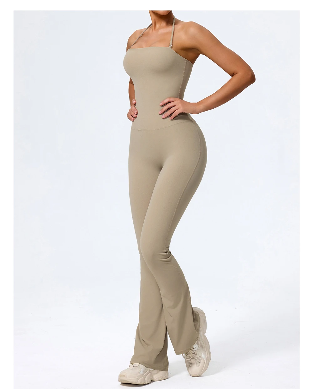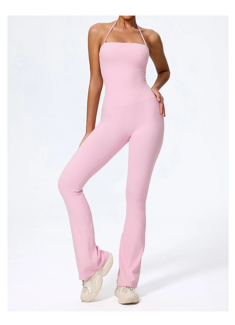 Fashionable peach-shaped hip-lifting and neck-hanging yoga jumpsuit for women casual and slightly flared fitness yoga wear