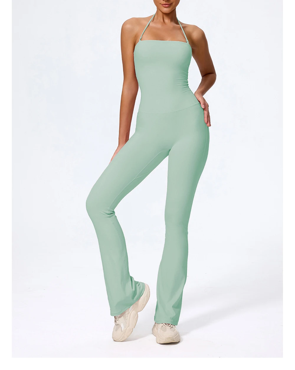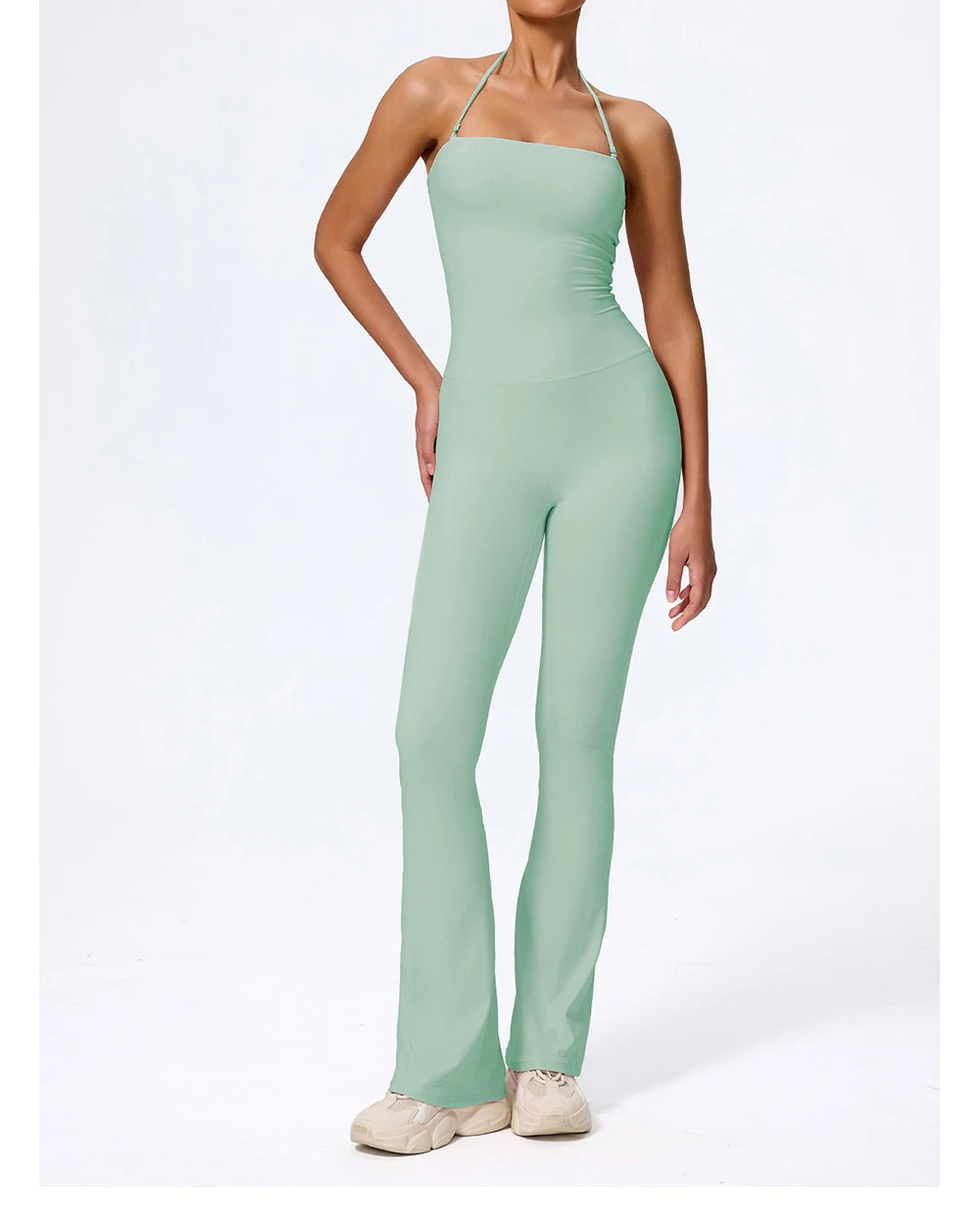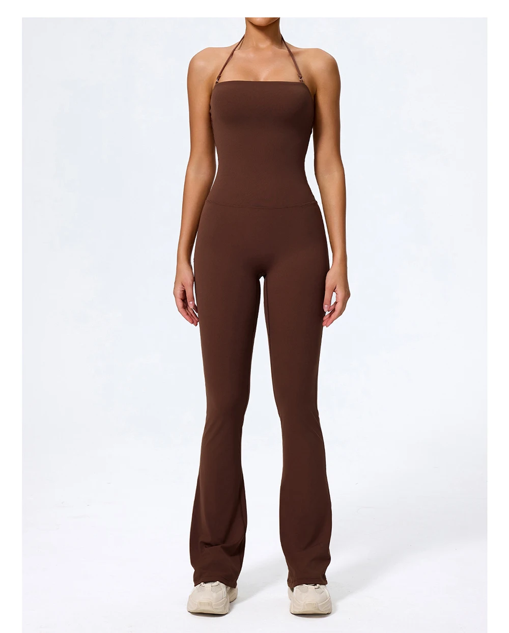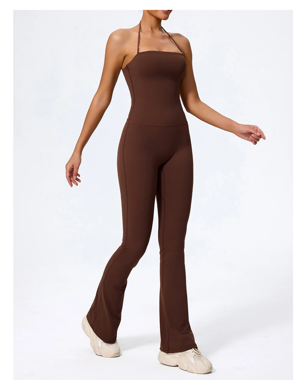 Fashionable peach-shaped hip-lifting and neck-hanging yoga jumpsuit for women casual and slightly flared fitness yoga wear