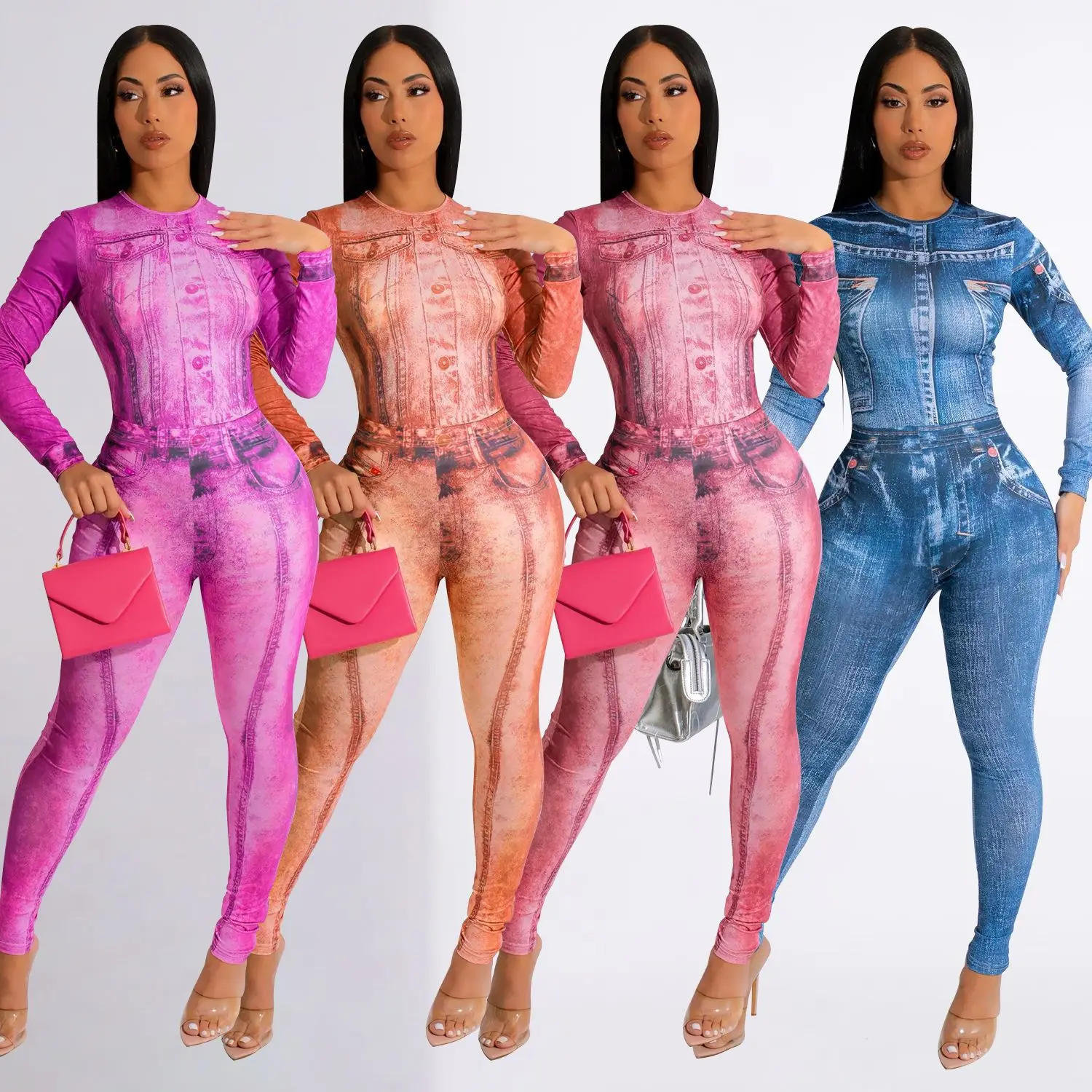 Fashionable Printed Long Jumpsuit Women's Clothing Amazon Best Seller New Style Tight Fitting European And American Wear