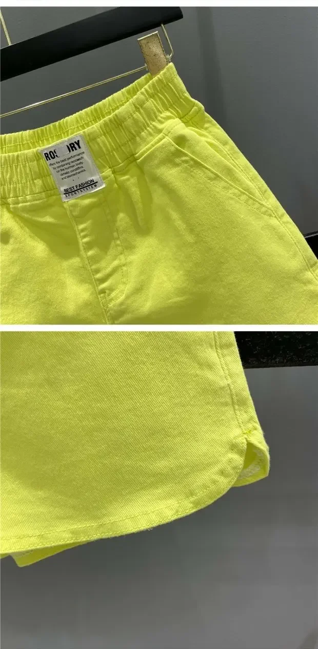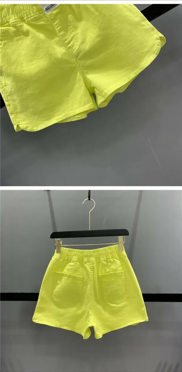 Fashionable Summer 300kg Candy Color Labeled Elastic Waist Casual Shorts Women's Loose Fit A- line Bell Bottoms