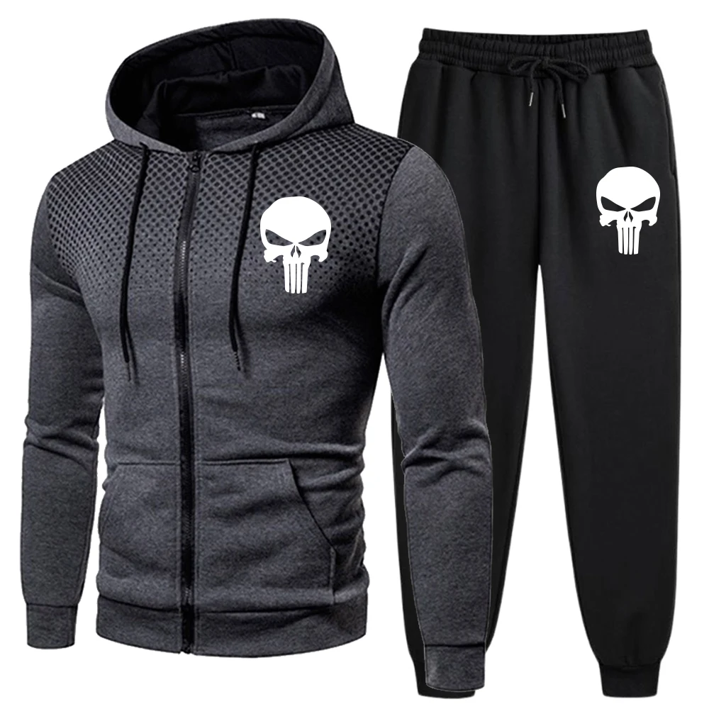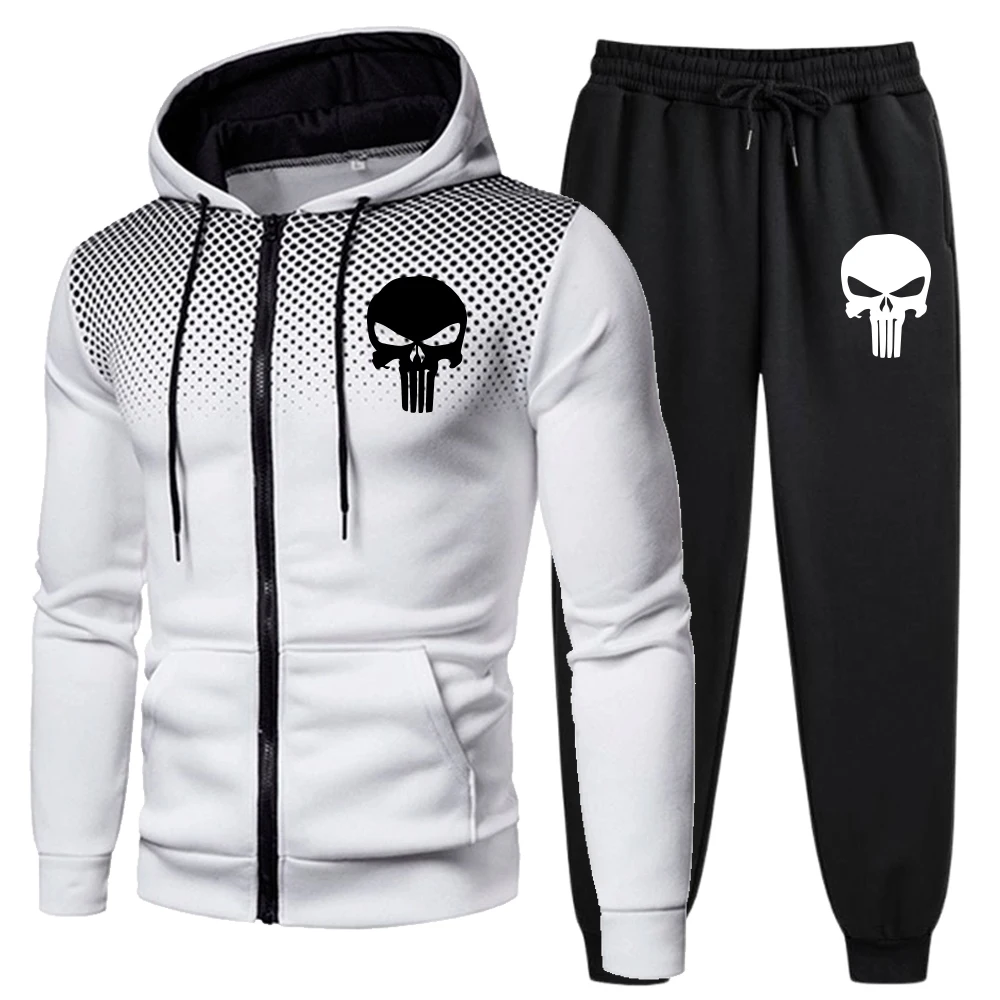 Funny Mens Tracksuit Print Casual Round Dot Zipper Hooded Jacket+Jogging Pants Set Daily Sweatshirt Sports Street Coat Clothing