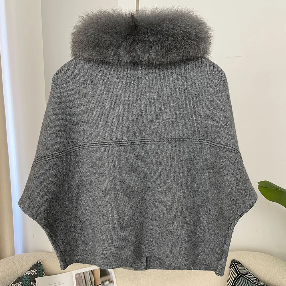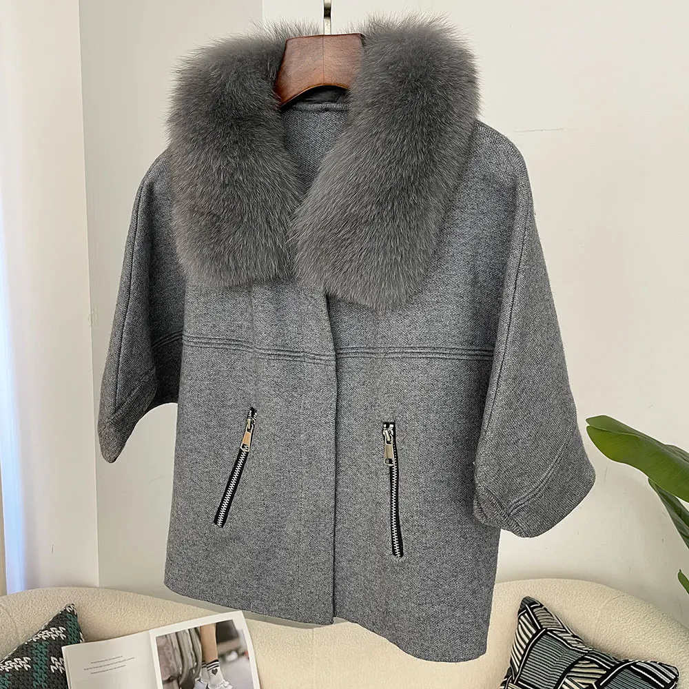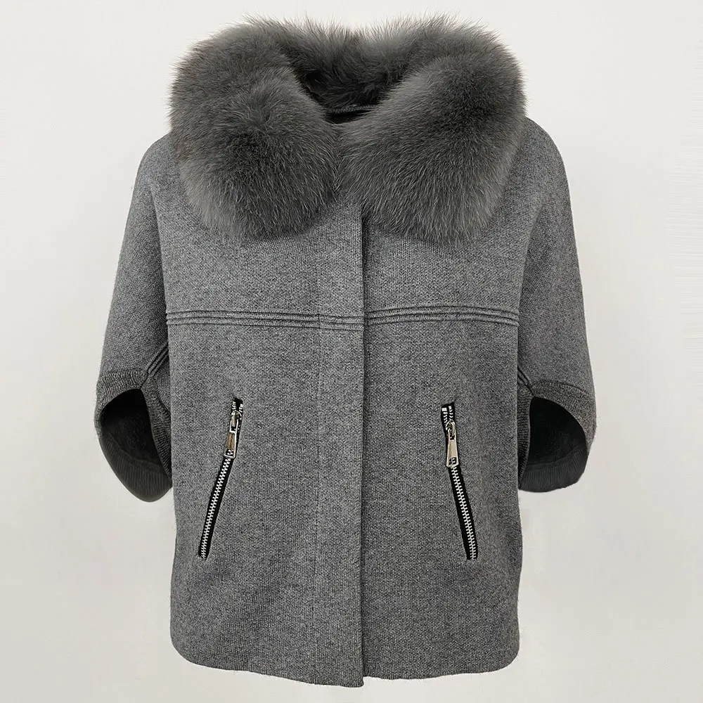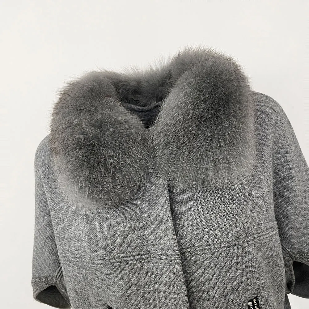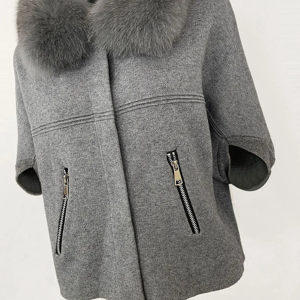 FURYOURSELF 2025 New Real Fox Raccoon Fur Collar Coat Knitted Sweater Women Short Sleeve Jacket Thick Warm Outerwear streetwear