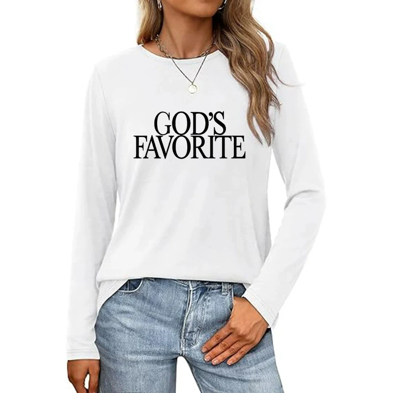 GOD'S FAVORITE Graphic Long Sleeve Tee Shirt Women's Simple Printed Crew Neck T-shirt Slim Fit Tshirt Woman Gothic Y2k Clothes
