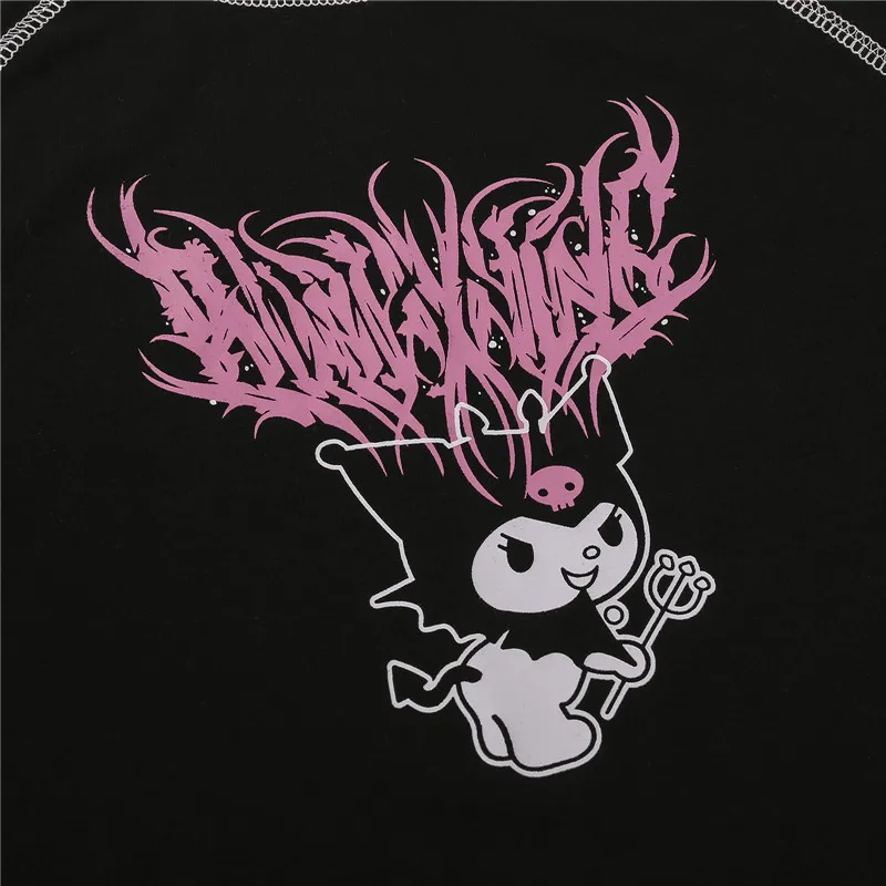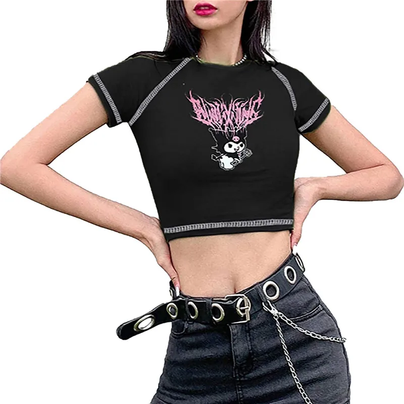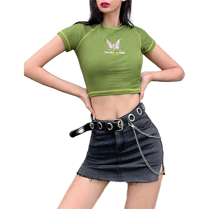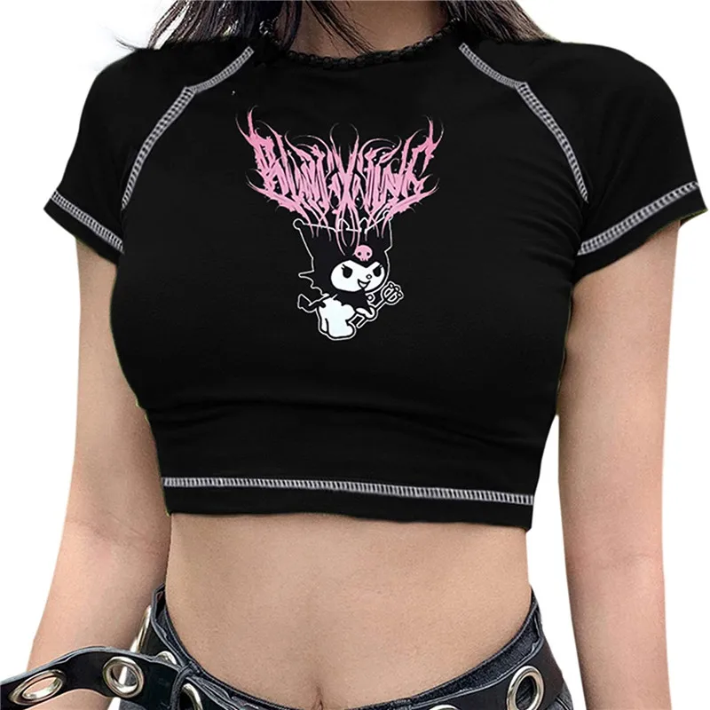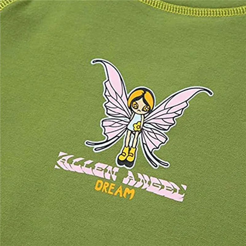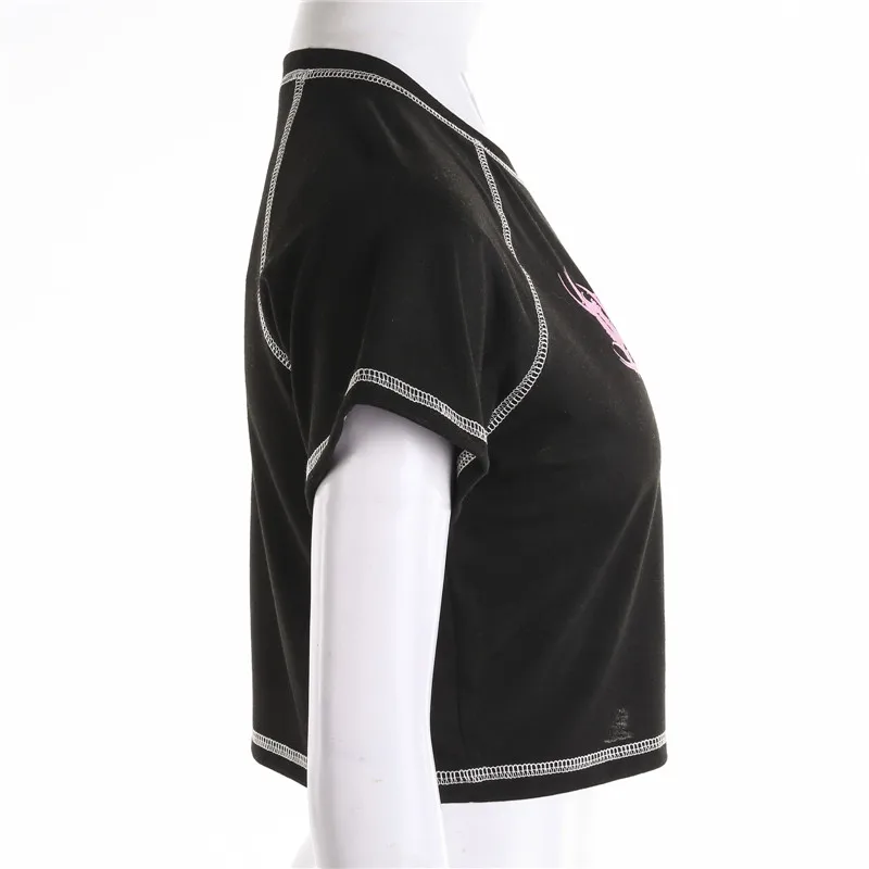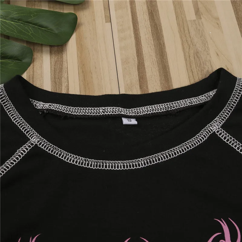 Gothic Graphic Printed T-Shirt For Ladies Harajuku Short Sleeve Crop Top Angels And Demons Print Tee Tops Women