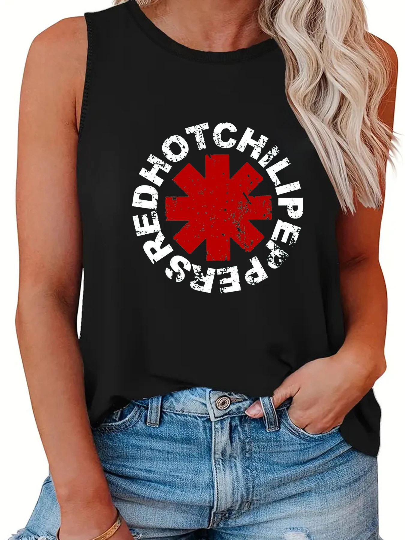 Harajuku Red Hot Chili Print Tank Tops Women Sleeveless Tee 2024 New
