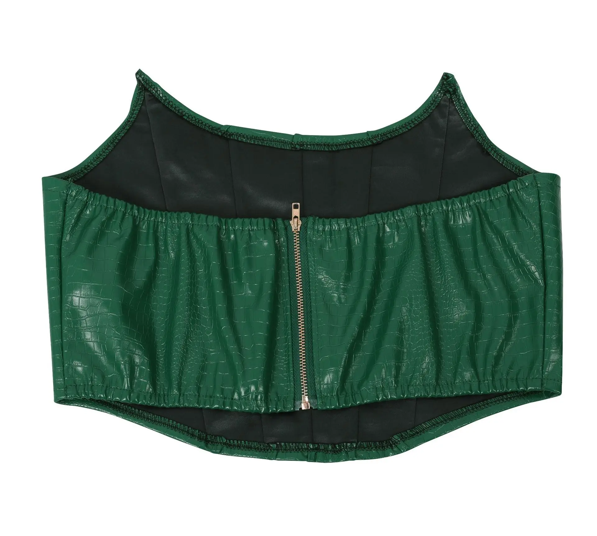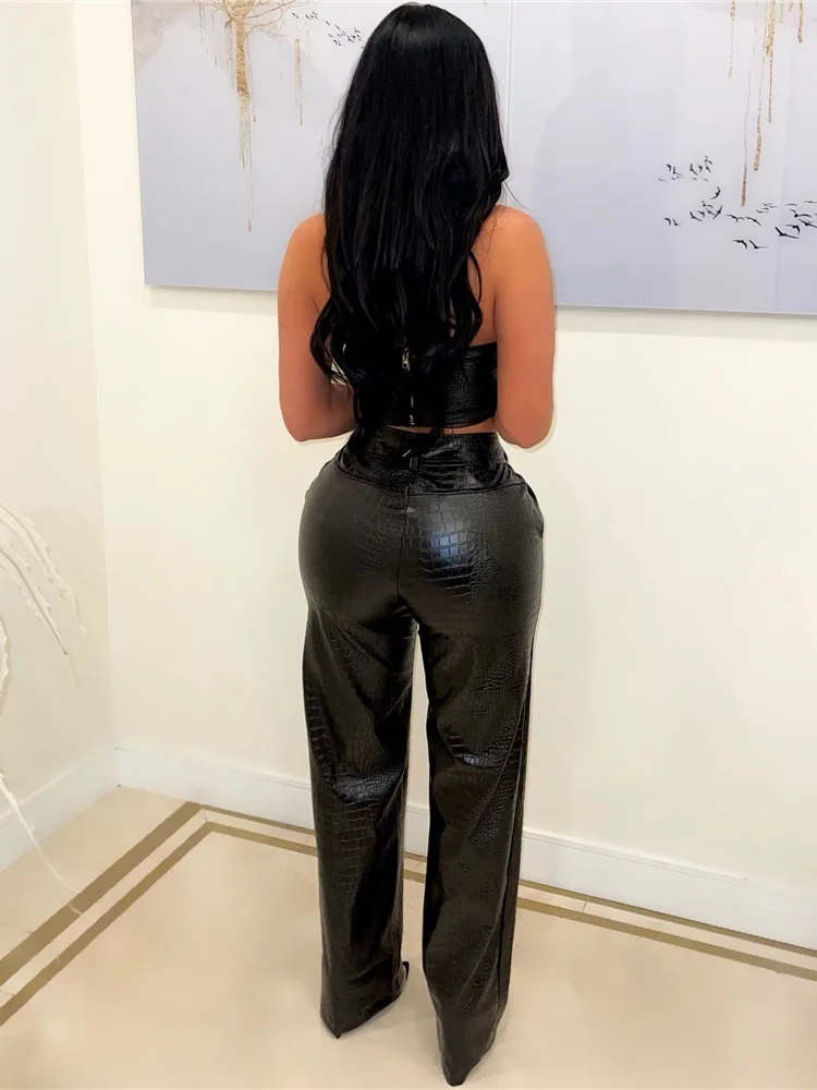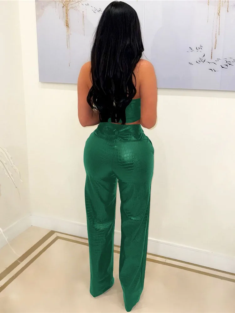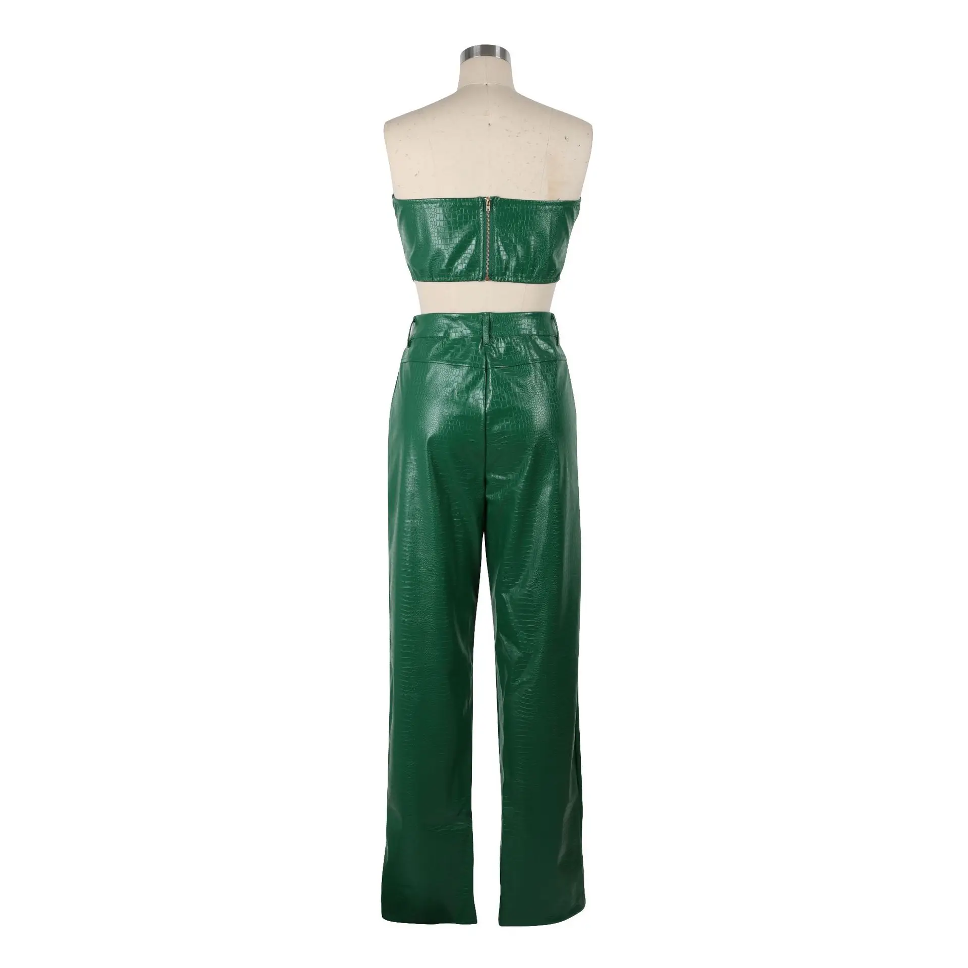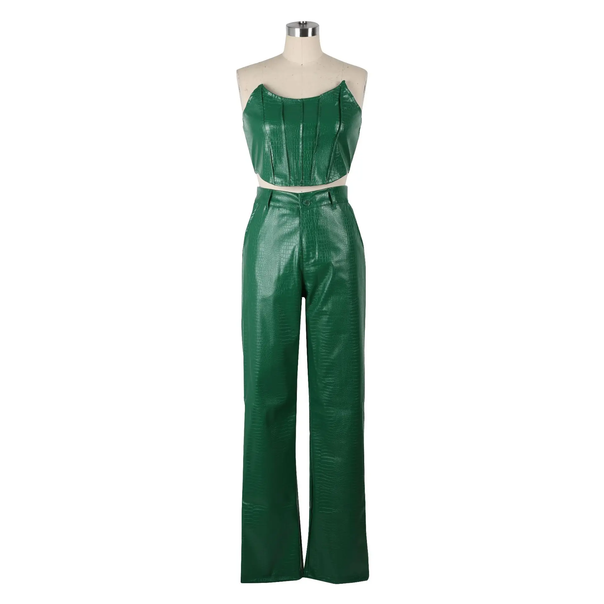 HBLL Women's Green Corset Cut-Out Cargo Sexy Sleeveless Jumpsuits PU Leather Matching Set Sexy Clubwear 2 Piece Outfits