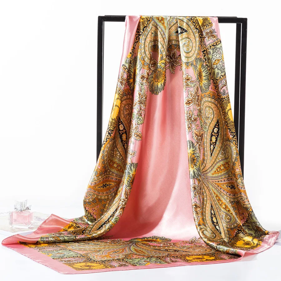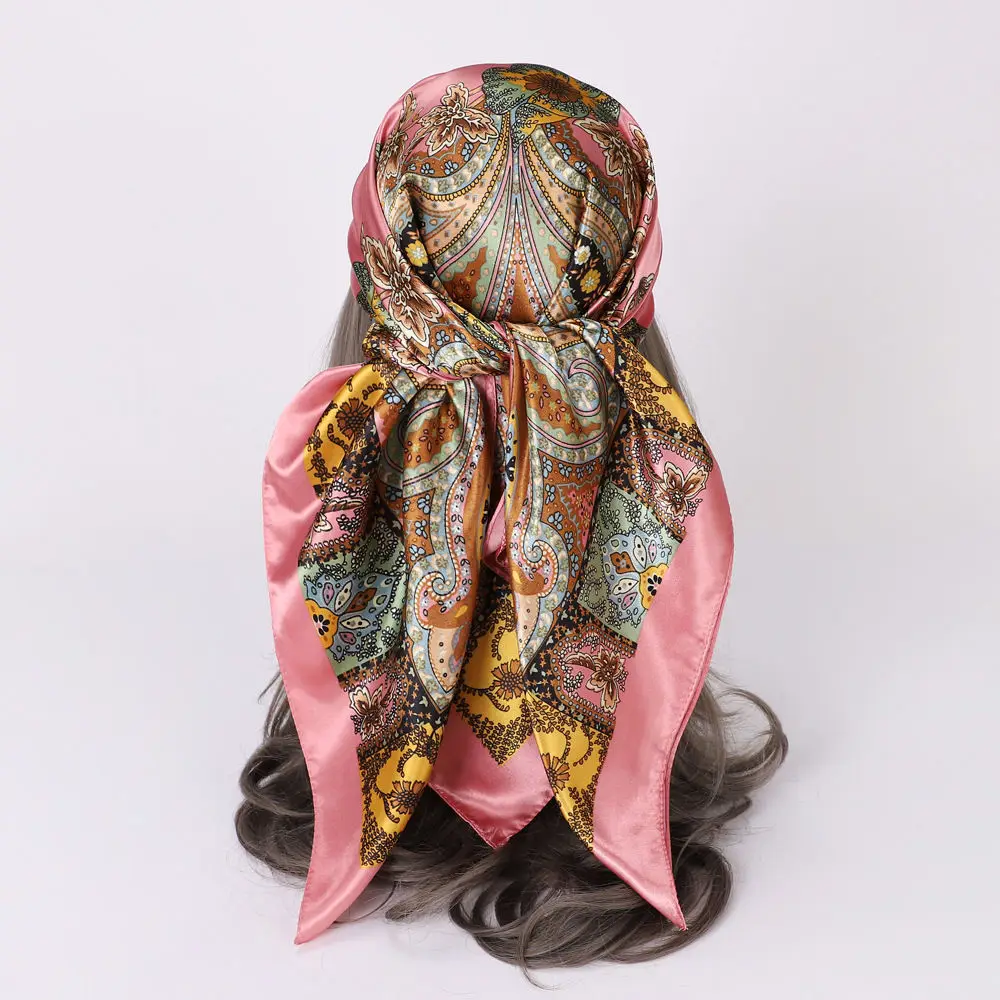 Head Scarf Women Pirate Costume Accessories Silk Red Bandana for Hair Wrapping Soft Neckerchief Silk Foulard Satin