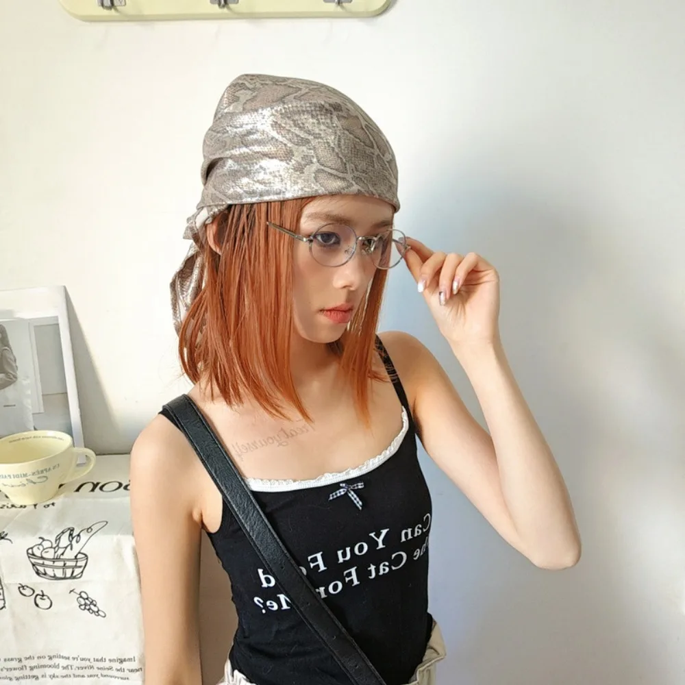 Headwear Y2K Snake Print Hair Scarf Soft Hip Hop Serpentine Hair Band Square Turban Snake Punk Bandana Streetwear