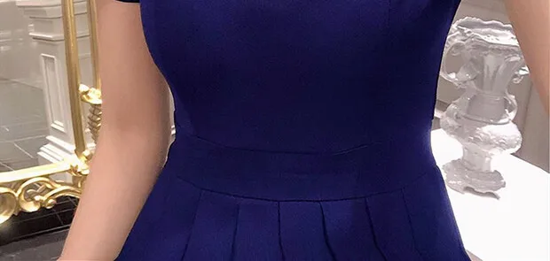 Featuring pleating and patchwork techniques, this dress combines classic and modern fashion elements for a unique look.