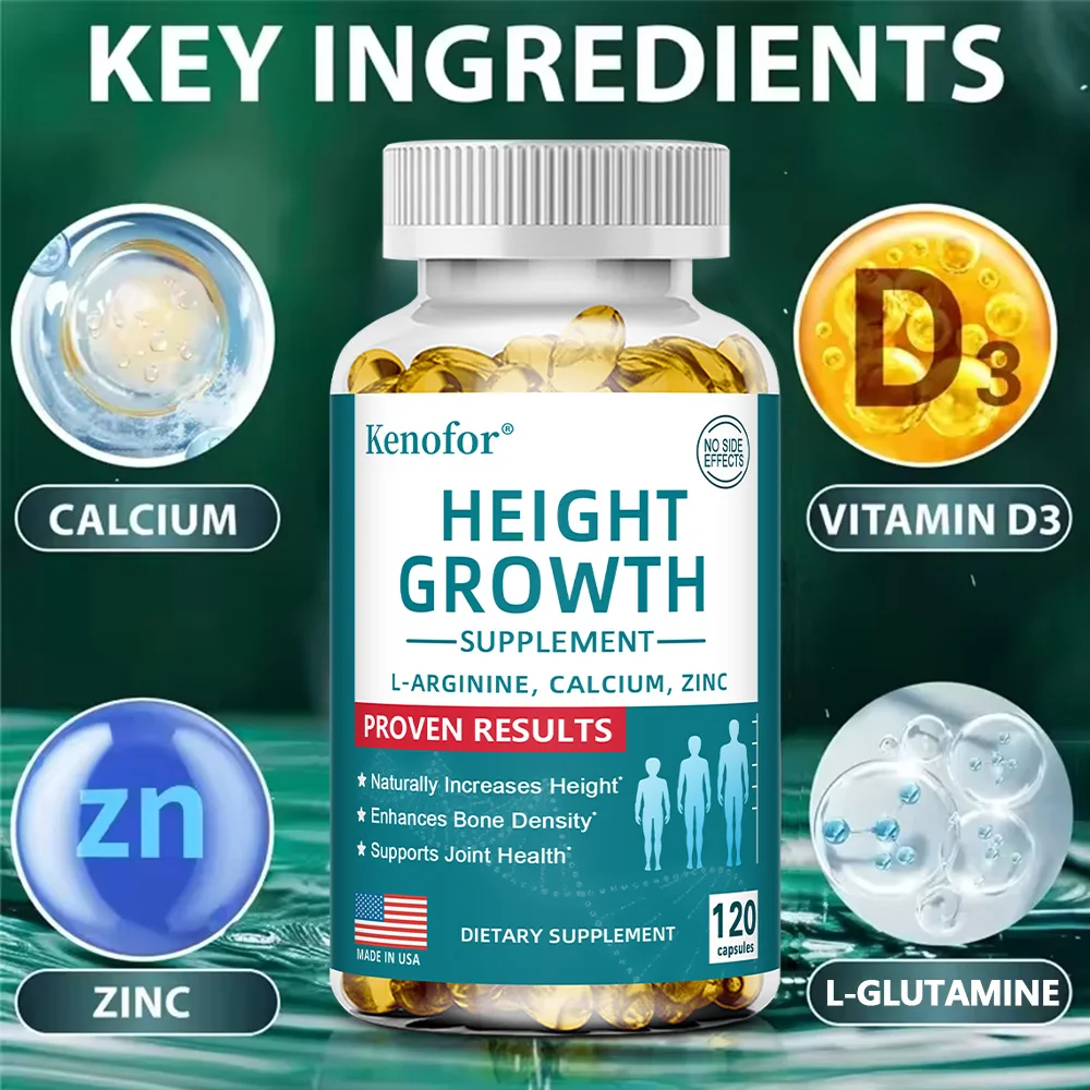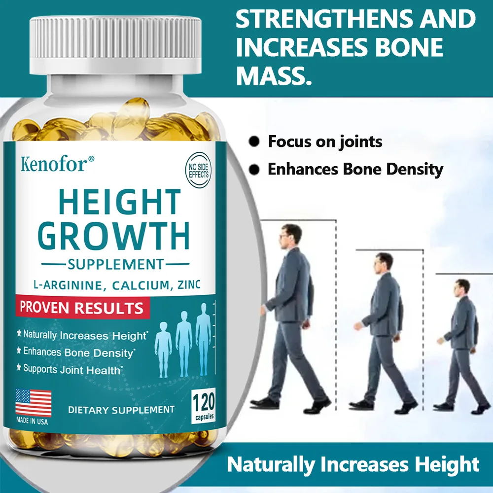 Height Growth Supplement - Calcium, L-Arginine, Vitamin D3, Zinc - Promotes Bone Growth - Helps Natural Height Growth Capsules