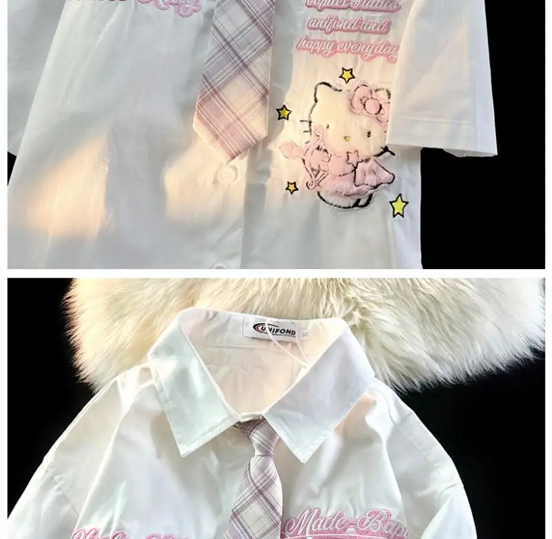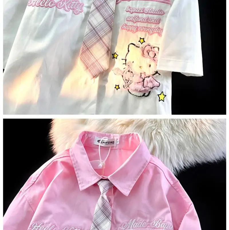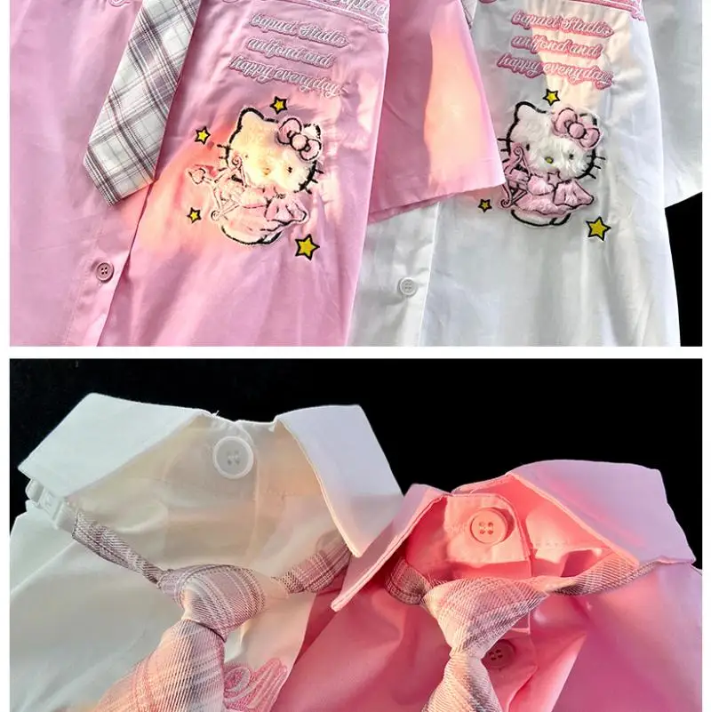 Hello Kitty Cute Short Sleeve Polo Shirts Women Sanrio Designer College Style Summer Blouse Korean Clothes Y2k New Fashion Tops