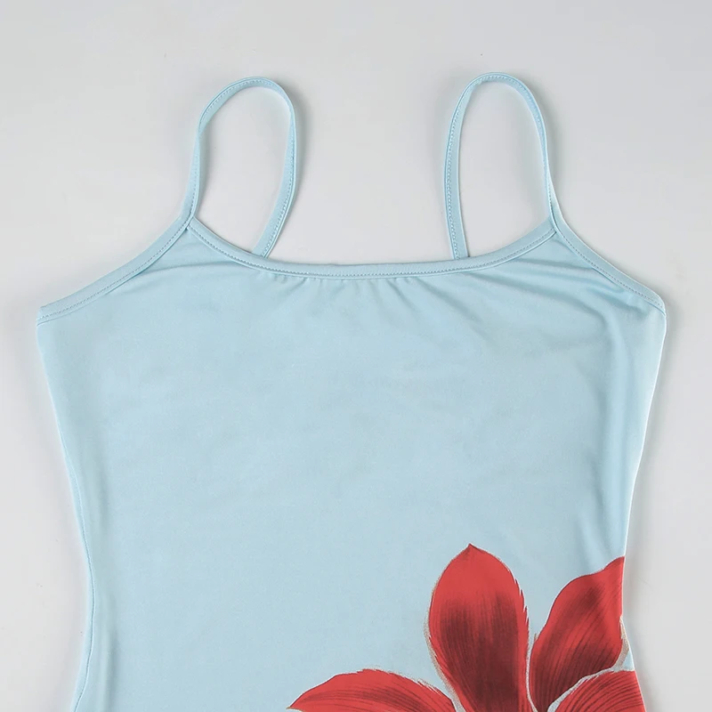 HEYounGIRL Boho Chic Spaghetti Strap Mini Dress Summer Y2K Floral Print Women Sexy Bodycon Dresses Beach Vacation Style Outfits