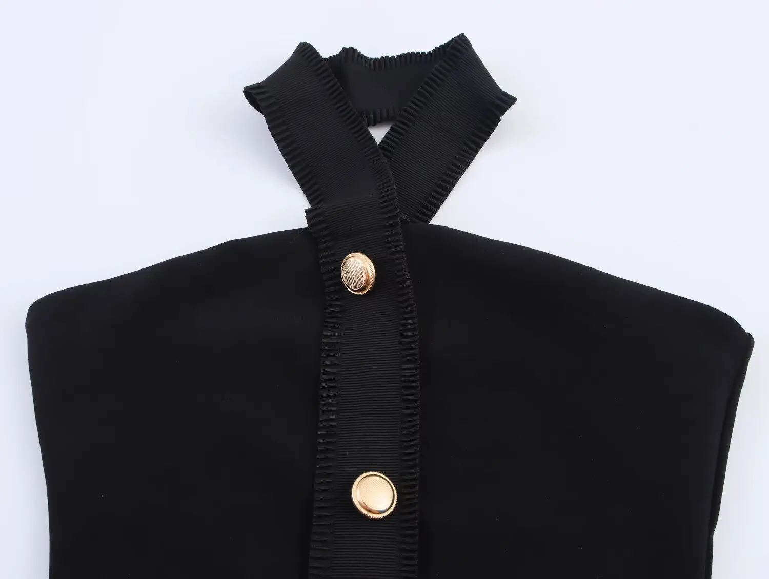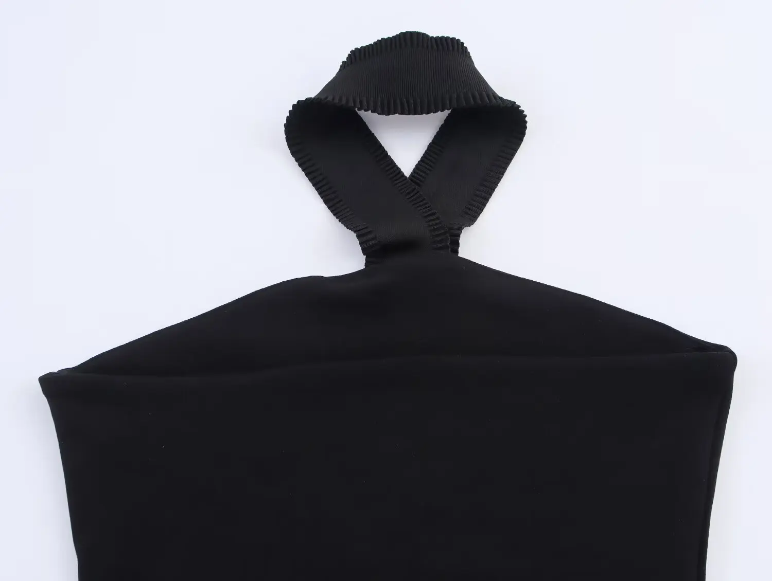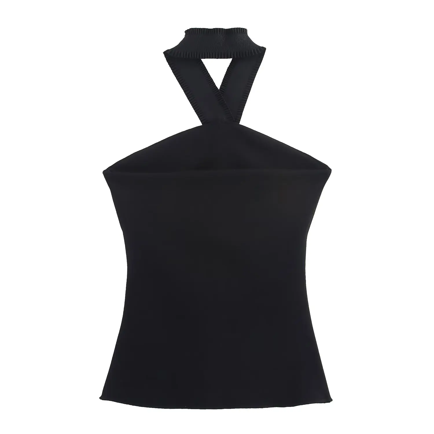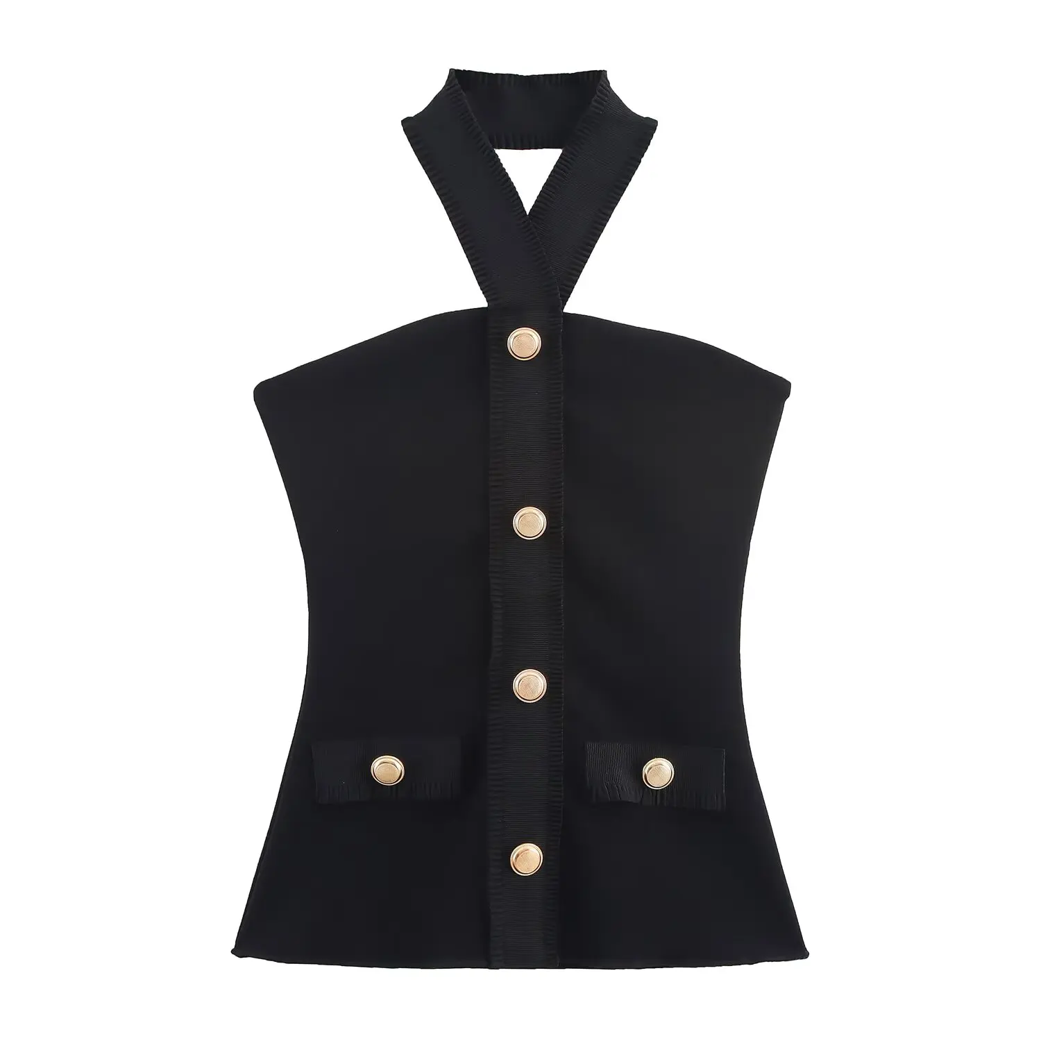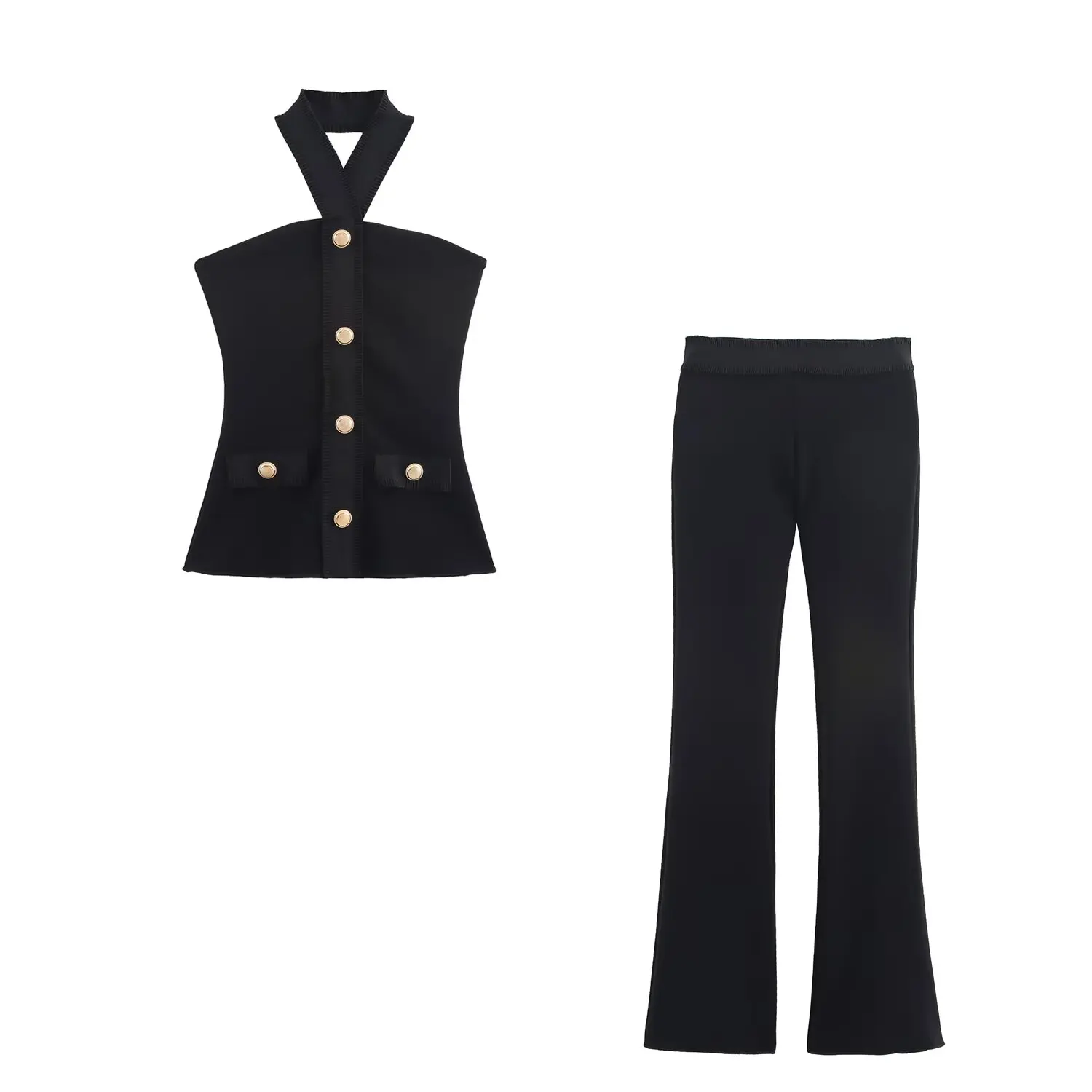 HH Women 2-Piece Set Elasticity Neck Halter Button Design Sleeveless Backless Sexy Top+Casual Elastic Waist Slim Long Pant
