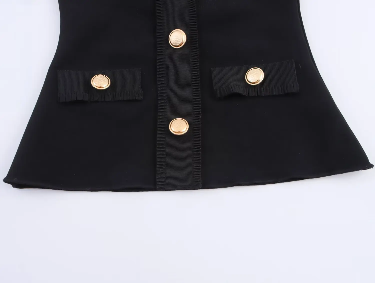 Two Piece Set Women Outfit 2023 Spring Fashion Drawstring Pocket Design U-Neck Sleeveless Skinny Jumpsuit & Long Sleeve Coat Set